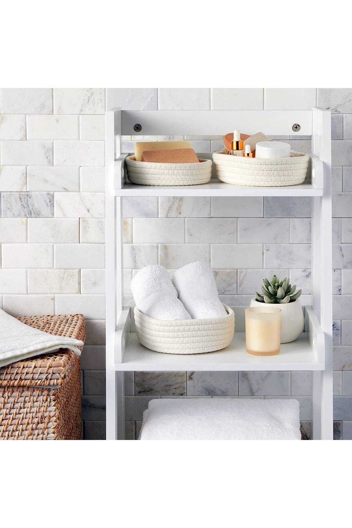 Doğal pamuk ipten dikilerek üretilmiştir. ; Eve daha yumuşak ve sıcak bir hava katan bu dekoratif sepet, evin vazgeçilmez bir parçası olacak. ; Multi Fonksiyoner sepet; Her şeyi düzenlemek için ideal, mutfakta meyve sepeti, masada atıştırmalık atıştırmalık sepeti veya evinizin temel eşyalarını saklamak için ihtiyacınız olan her yerde. Özellikle raflara yerleştirmek için uygundur. Bu küçük pamuklu sepet hayatınızı daha az dağınık hale getirecek, evinizi düzenlemeyi daha çok sevmenize izin verecek. ; Makinede 30 derecede sıkma işlemi yapmadan yıkayabilirsiniz ; Sepetlerin ölçüler 21×8 cm, 19×7 cm ve 17×6 cm ‘dir ; %100 Doğaldır ;