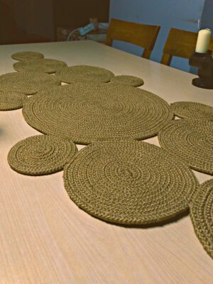 Jüt / Hasır, Amerikan Servis, Oval Jüt, 2-li Örgü Supla, Sunum Takımı./