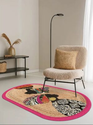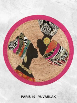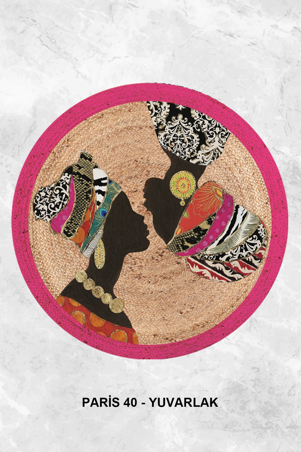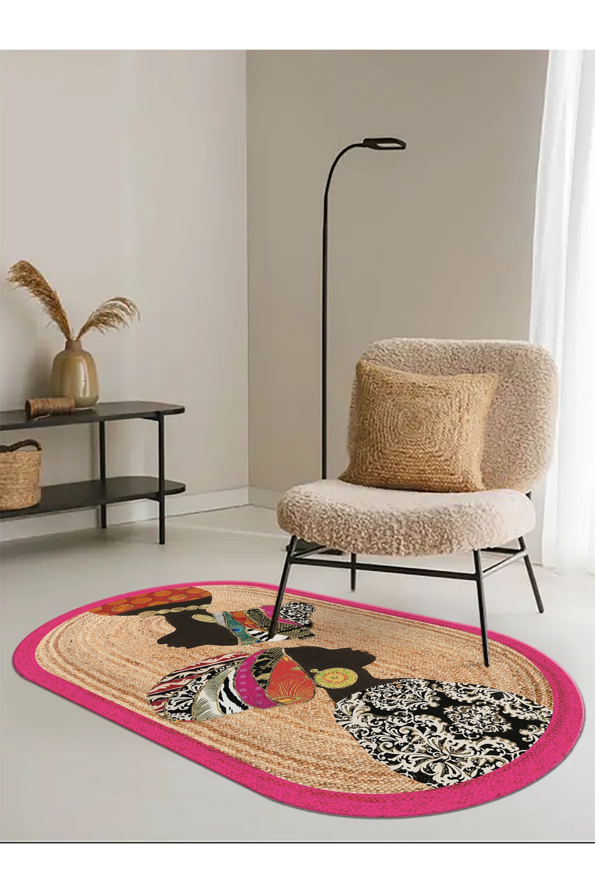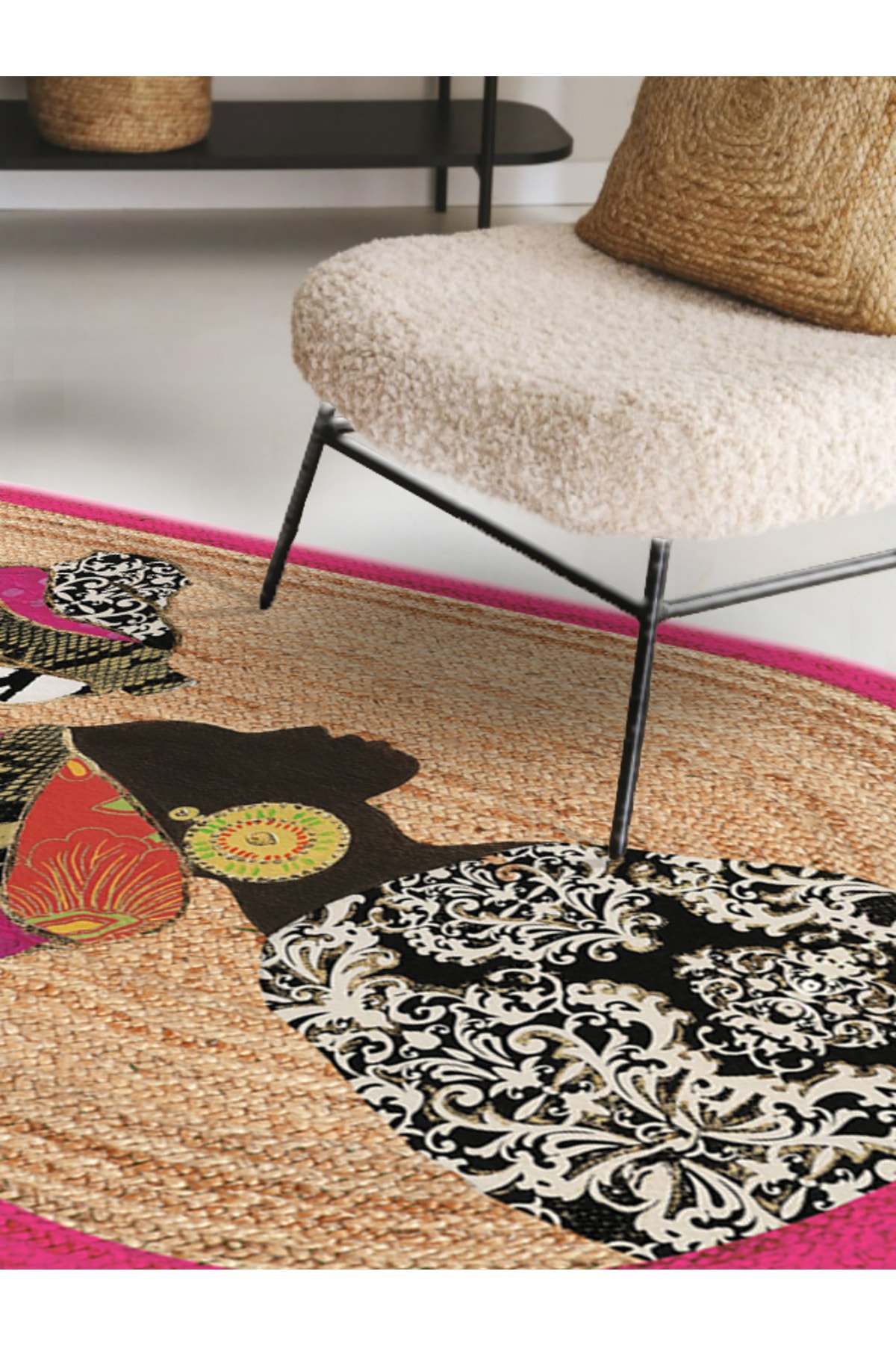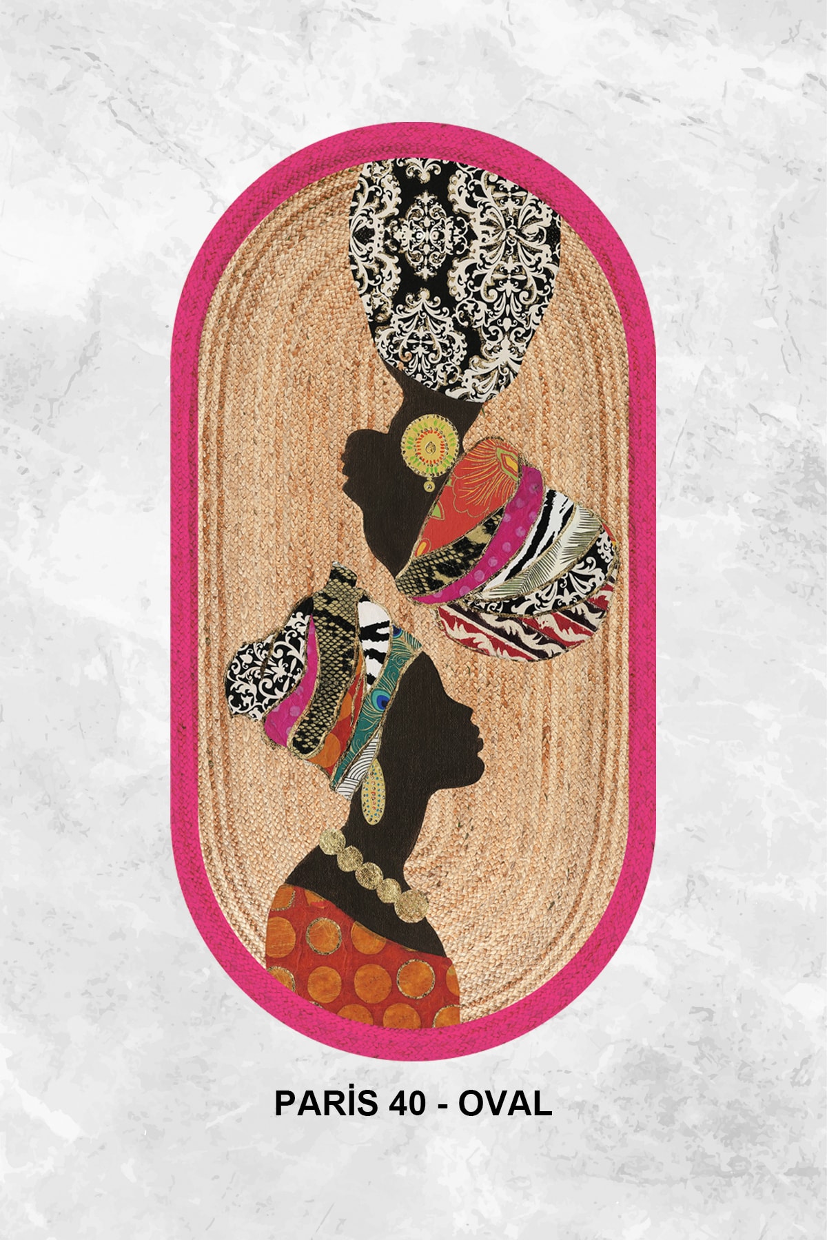 Afrikalı Kadın Baskılı Jüt Görünümlü Dijital Baskılı Kilim, Çift Taraflı Örme Üzeri Baskı Jüt Kilim