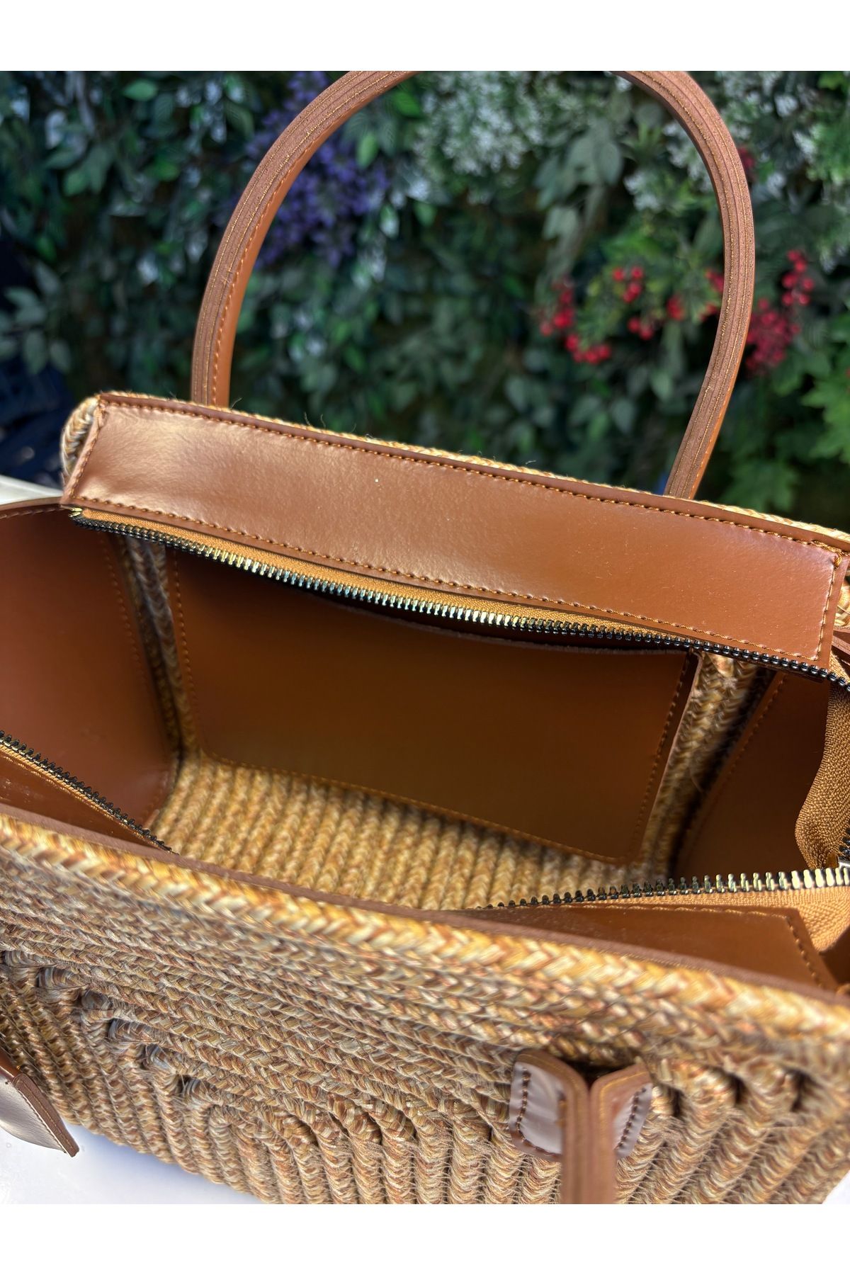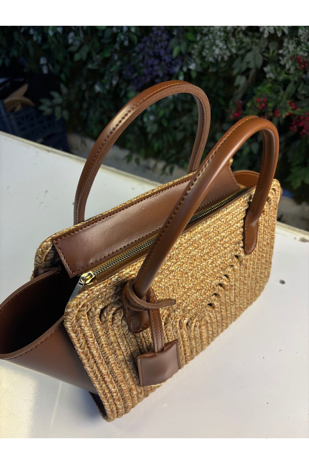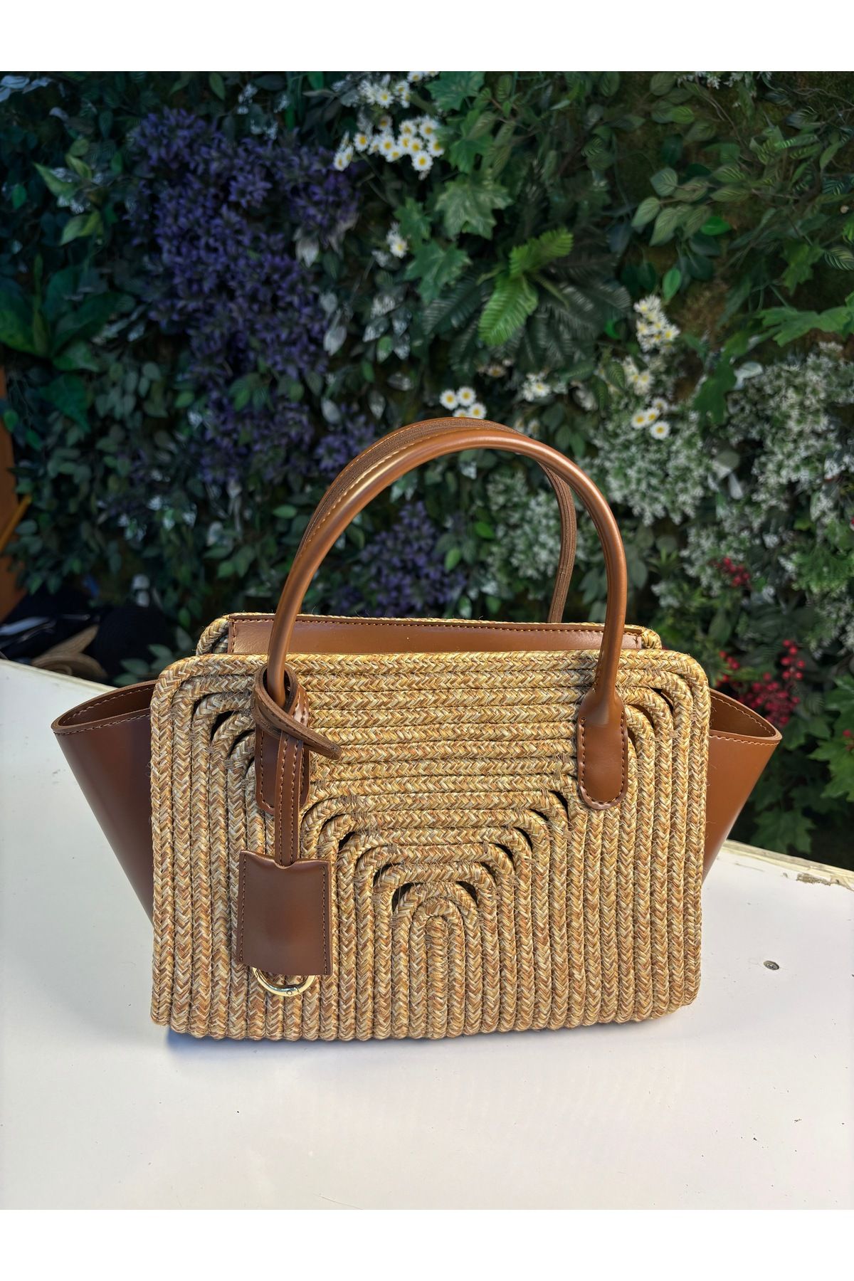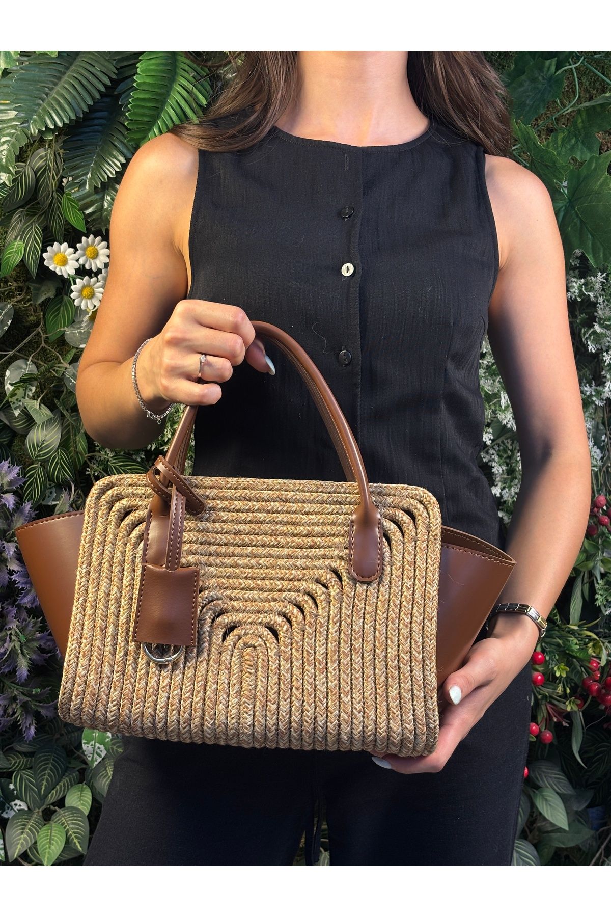 Amalfi Hasır Görünümlü Deri Karışımı Kol Çantası