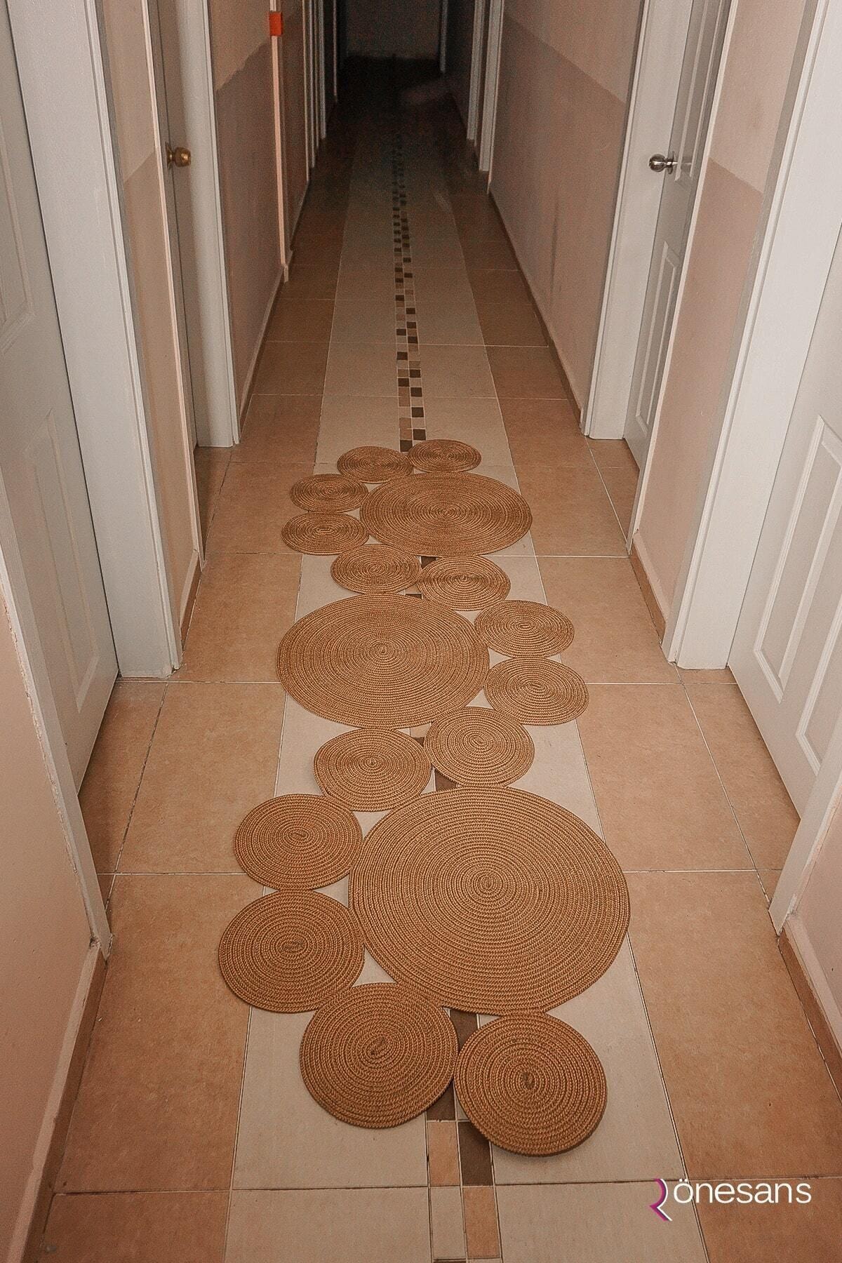 Bej Jüt Hasırlı El Örgüsü Kilim Halı Hasır