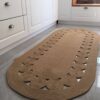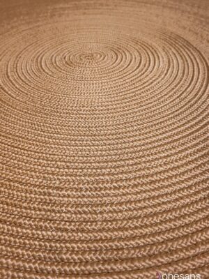 Bej Milda Jüt Hasırlı El Örgüsü Kilim Halı Hasır Yuvarlak Düz