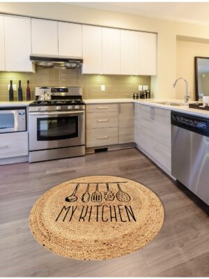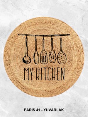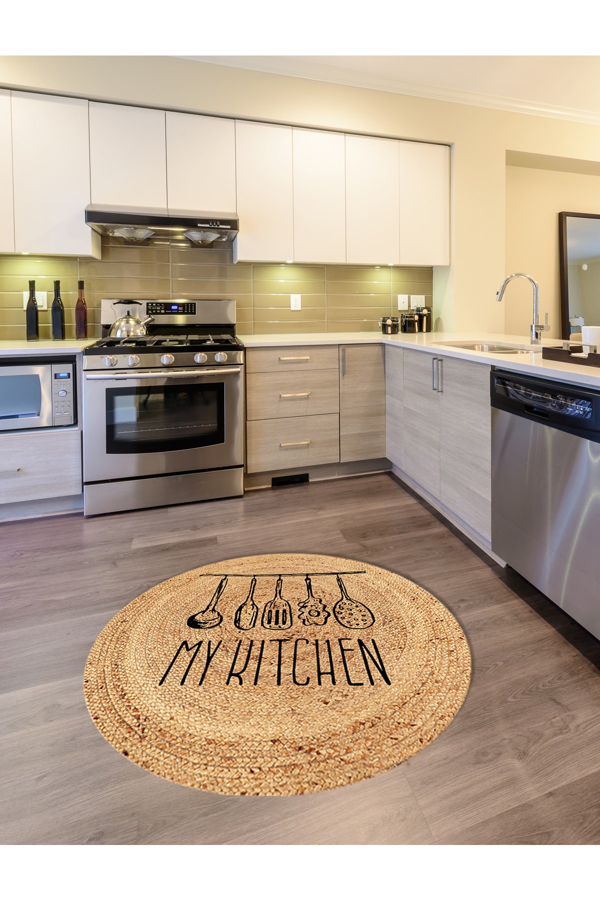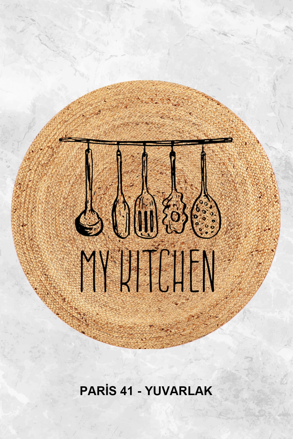Benim Mutfağım Baskılı Jüt Görünümlü Dijital Baskılı Kilim, Çift Taraflı Örme Üzeri Baskı Jüt Kilim