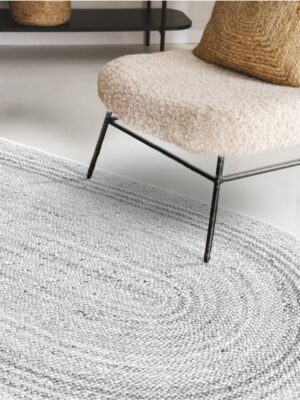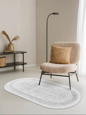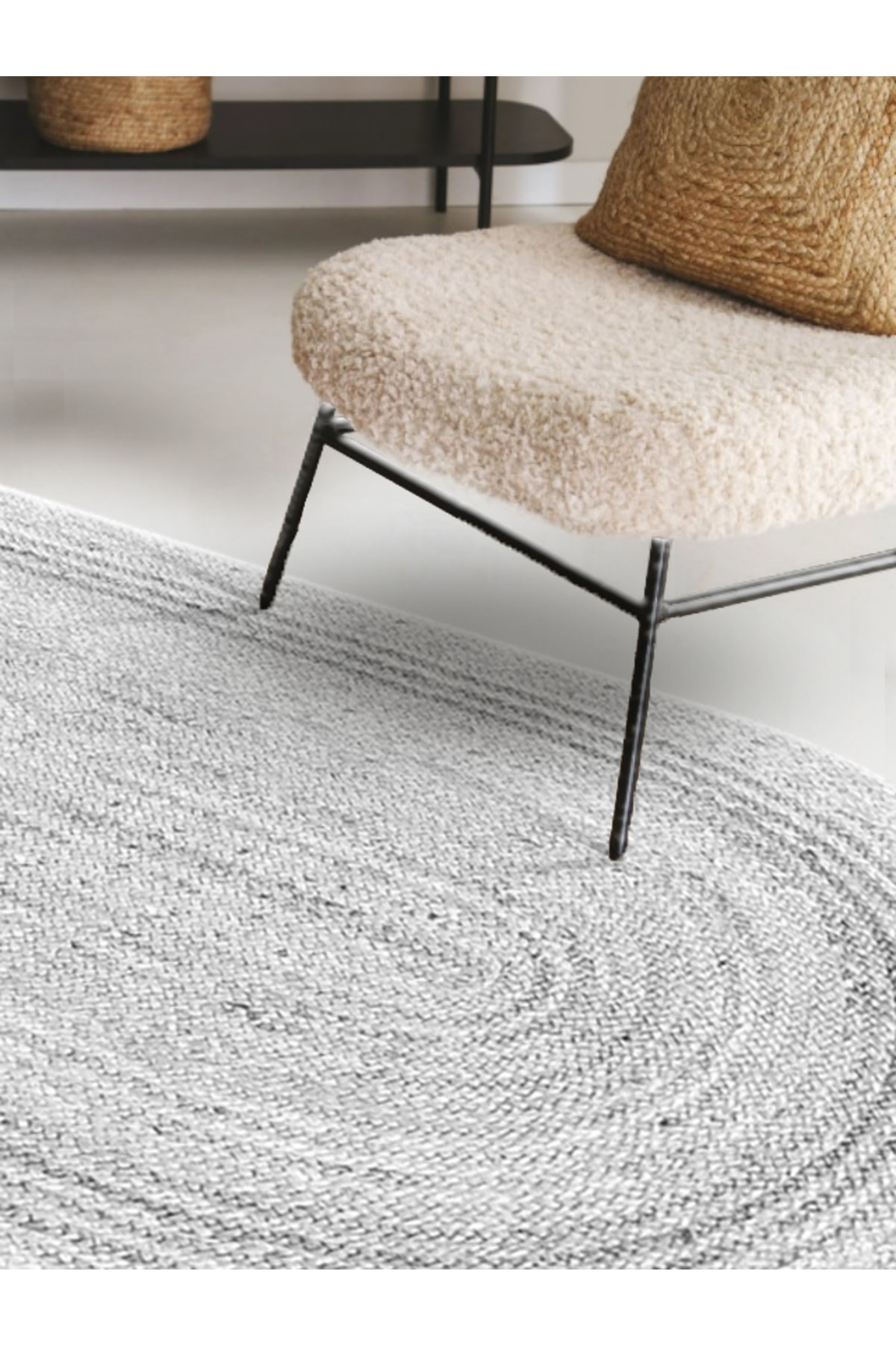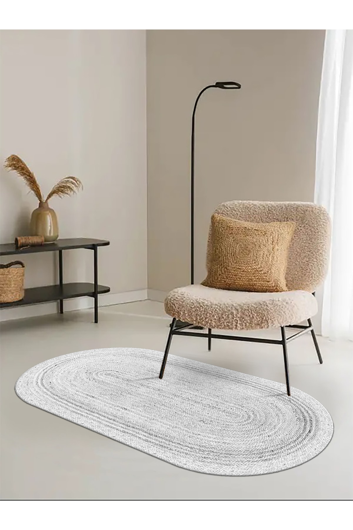 Beyaz Baskılı Jüt Görünümlü Dijital Baskılı Kilim, Çift Taraflı Örme Üzeri Baskı Jüt Kilim