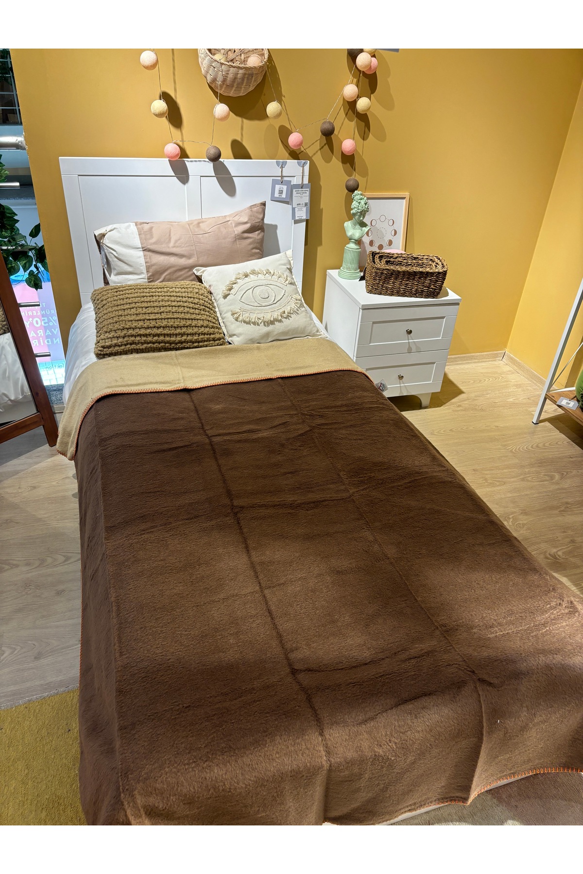 – Çift taraflı kullanım özelliği sayesinde, her iki yüzeyi de farklı bir dokunuş ve görünüm sunar.; – 2 kg ve üzeri ağırlığı ile kalın ve dayanıklı yapısı, uzun süreli kullanım için idealdir.; – %58 pamuk içeriğiyle yumuşak dokunuşu ve doğal hissiyatı evinize taşır.; – Ağırlıklı olarak pamuk, akrilik ve polyester karışımından üretilmiştir, bu da ürünün hem yumuşak hem de dayanıklı olmasını sağlar.; – Yıkama talimatlarına uygun şekilde bakım yapıldığında uzun ömürlü kullanım sunar.; – Tek pakette 1 adet battaniye bulunur; ekstra alışveriş ihtiyacını ortadan kaldırır.; – Türkiye menşeli olması, yerel üreticilerden temin edilmesini destekler ve sürdürülebilirliği teşvik eder.; – 200 x 220 cm boyutlarındaki geniş yapısıyla battaniye, rahatça sarılma ve örtünme imkanı sunar.; – Düz deseniyle sade ve şık bir görünüm sergiler, her türlü dekorasyonla kolayca uyum sağlar ve sıcak tutar.; Ev hediyeleri için idealdir.;