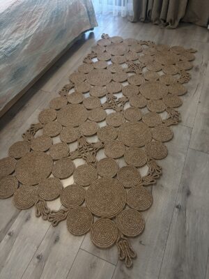 El işçiliğiyle üretilen Mavaux Doğal Hasır Halat Kilim, dairesel formda modern ve bohem tarzı birleştirerek yaşam alanlarına estetik bir dokunuş katar.; %100 doğal jüt halattan üretilmiştir ve Type 3 yıkama talimatına uygun şekilde hazırlanmıştır.; Dayanıklı yapısı sayesinde uzun ömürlü kullanım sunar.; Antre, yatak odası, salon ve banyo gibi tüm yaşam alanlarında dekoratif bir tamamlayıcı olarak kullanılabilir.; Yalnızca soğuk suda (maks.; 30°C) elde yıkayınız, ağartıcı veya kimyasal temizlik maddeleri kullanmayınız, makinede sıkma veya yüksek devir yıkama yapmayınız.; Gölgelik ve havadar bir ortamda sererek kurutunuz, direkt güneş ışığına maruz bırakmayınız, ütü ve kuru temizleme uygulamayınız.; Doğallığın ve şıklığın buluştuğu bu özel kilim, her detayında el emeği ve zarafeti yansıtır.;