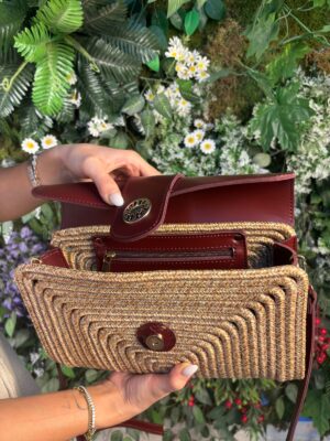 Capri Hasır Görünümlü Deri Karışımı Şık Omuz Çapraz Çanta