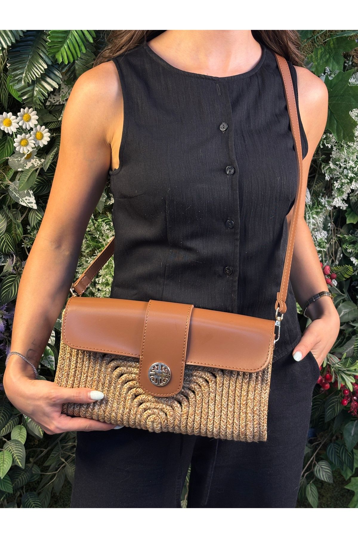 – Yaz aylarının vazgeçilmezi olan Capri Hasır Görünümlü Deri Karışımı Şık Omuz Çapraz Çanta, plajda şıklığınızı tamamlar.; – %70 pamuk ve %30 polipropilen karışımından üretilmiş materyali ile hafif ve dayanıklı bir kullanım sunar.; – Kolay temizlenebilir yapısı sayesinde yaz boyunca pratiklik sağlar; yıkama talimatlarına uygun şekilde bakım yapılabilir.; – Sade ve düz deseniyle her türlü kıyafetle kolayca uyum sağlayarak zamansız bir stil oluşturur.; – Türkiye’de üretilmiş olup yerel malzemelerin kalitesini yansıtırken aynı zamanda çevre dostu bir seçimdir.; – Hem kadın hem de kız kullanıcılar için idealdir; her yaş grubuna hitap eder.; – Beachwear koleksiyonunun parçası olarak tasarlanmıştır; deniz kenarı veya havuz başında rahatlıkla kullanılabilir.; – İmitasyon deriden yapılmış dış yüzeyi ile gerçek derinin estetiğini ekonomik bir alternatif olarak sunar.; – Dokuma kumaş tipi sayesinde uzun süreli kullanım vaad ederken dayanıklılığı arttırır.; – Tek parça halinde gelen bu çanta, minimalist tasarım severler için mükemmel bir seçenektir.; – 18 – 40 yaş arası yetişkinlerin tercihi olarak öne çıkarken genç tarza sahip kişiler tarafından da beğenilecektir.;