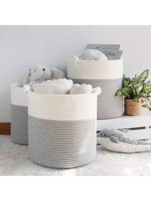 Chang Örgü Saplı 3’lü Saplı Sepet, Düzenleyici 3’lü Sepet, Hasır Dokuma Sepet 30cm x 30cm