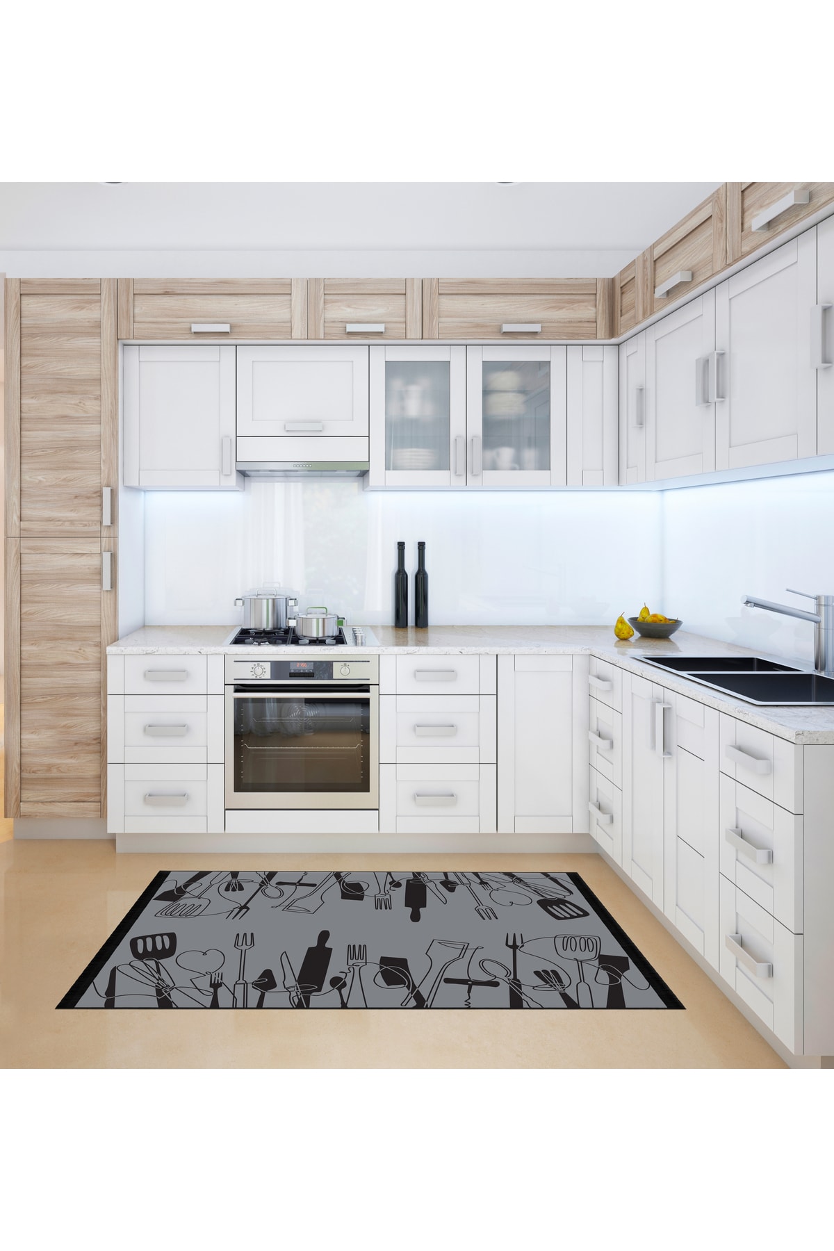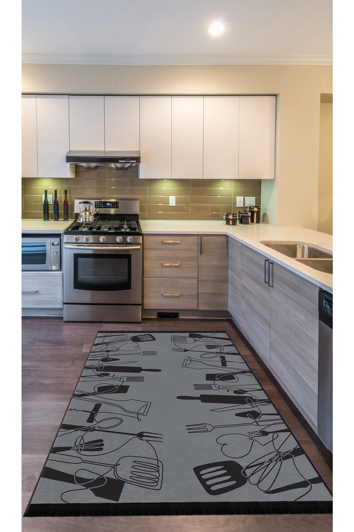 Chef Koleksiyon Çatallı Mutfak Halıları, Mutfak Yollukları, Kaymaz Pamuk Taban Yıkanabilir Halılar