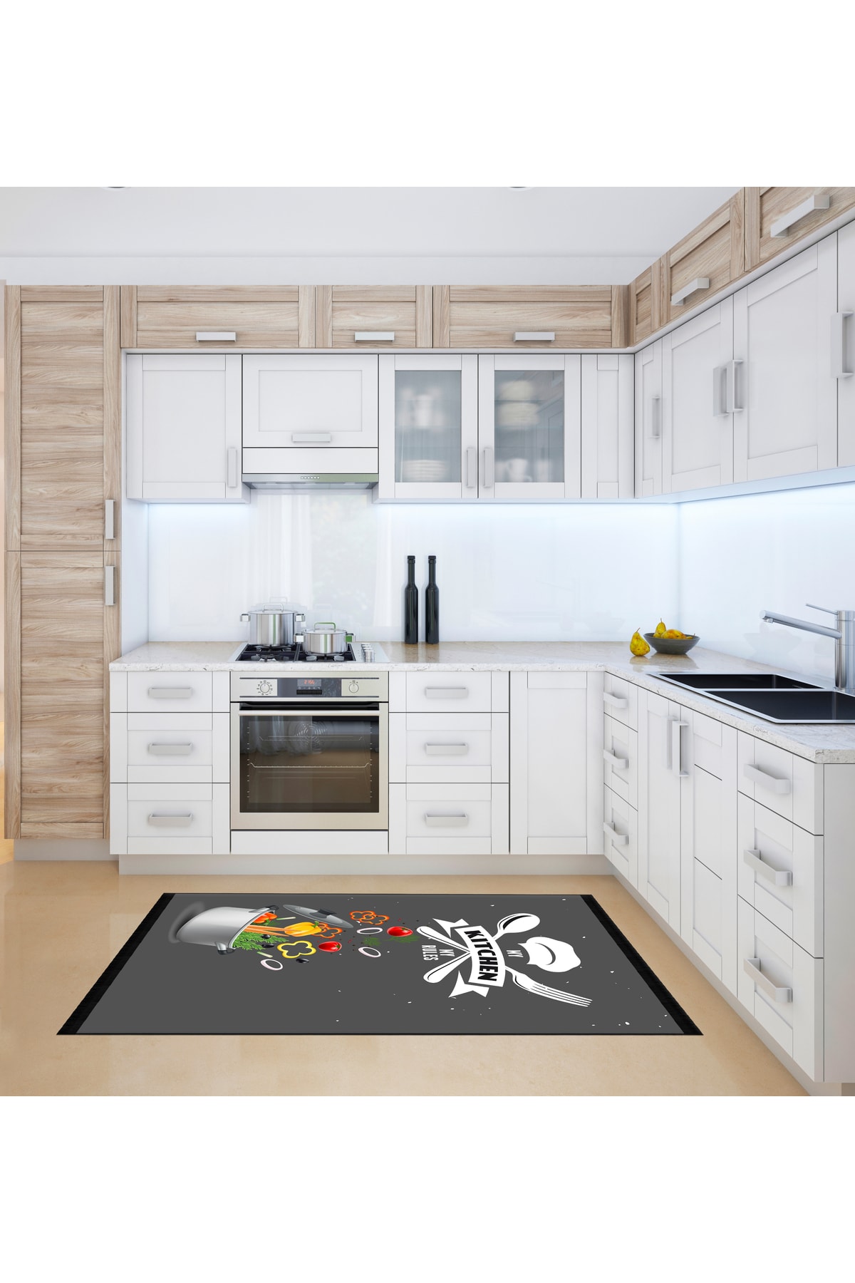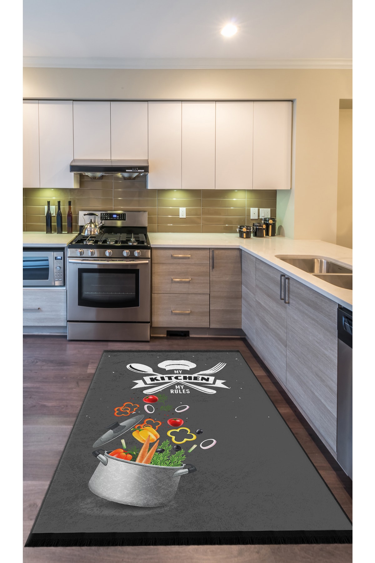 Chef Koleksiyon My Rules Mutfak Halıları, Mutfak Yollukları, Kaymaz Pamuk Taban Yıkanabilir Halılar