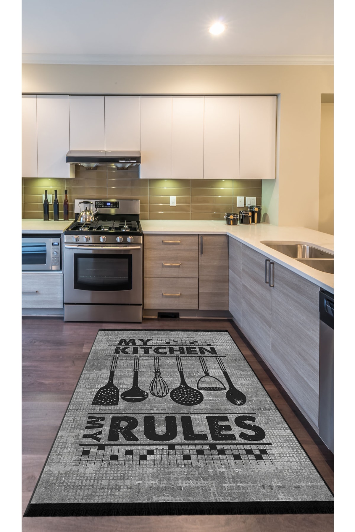 Chef Koleksiyon My Rules Mutfak Halıları, Mutfak Yollukları, Kaymaz Pamuk Taban Yıkanabilir Halılar