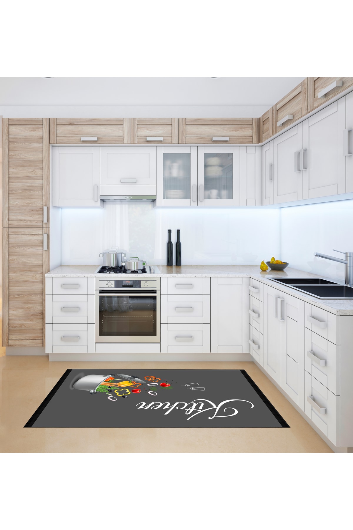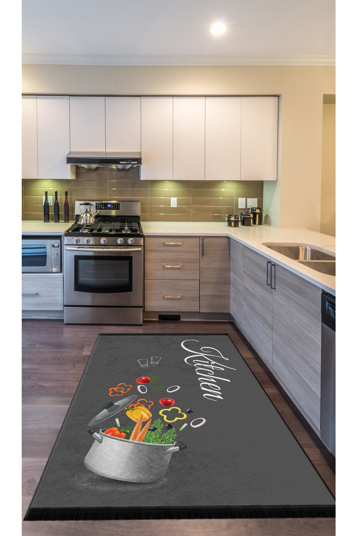Chef Koleksiyon Sebzeli Mutfak Halıları, Mutfak Yollukları, Kaymaz Pamuk Taban Yıkanabilir Halılar