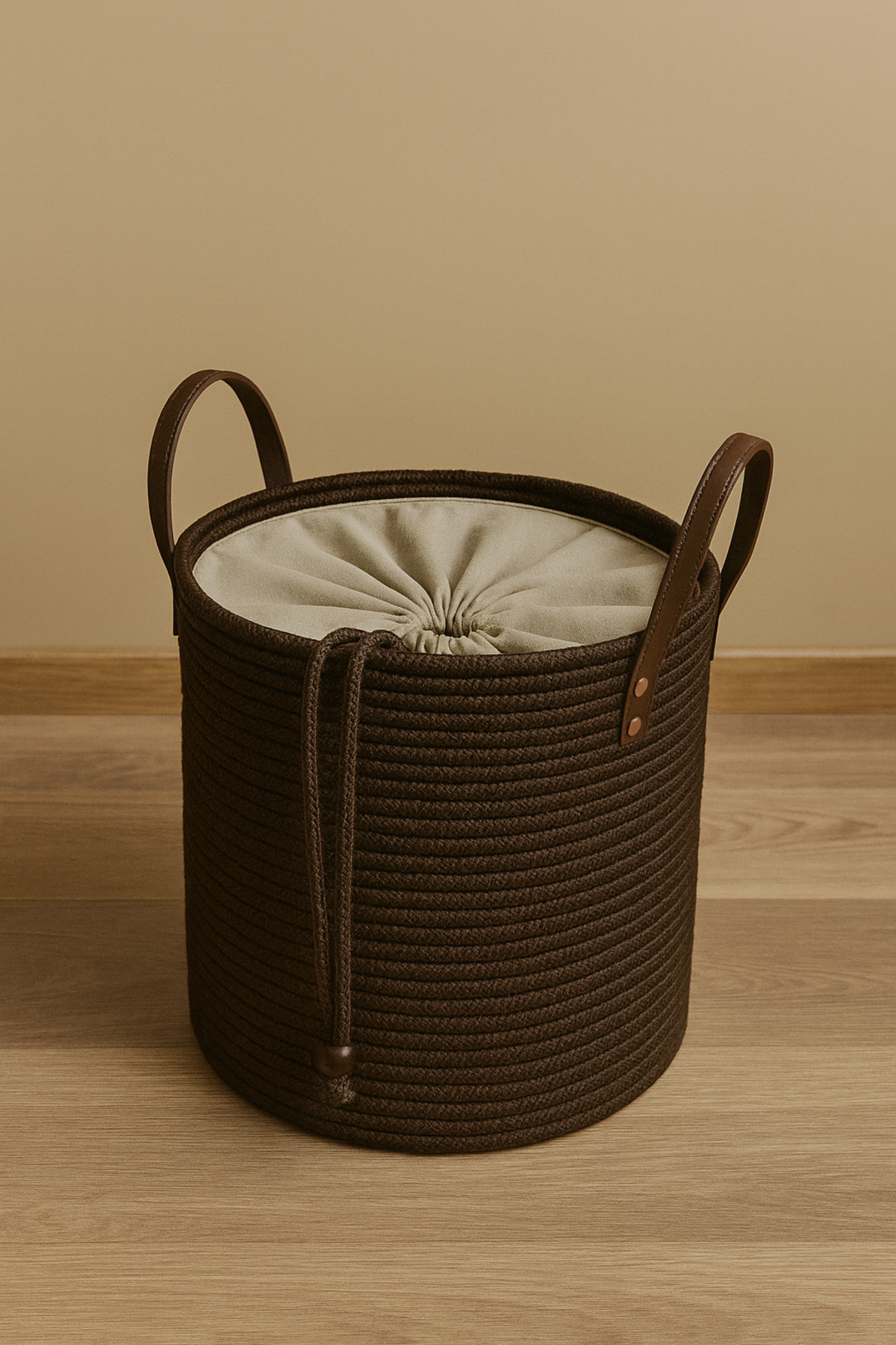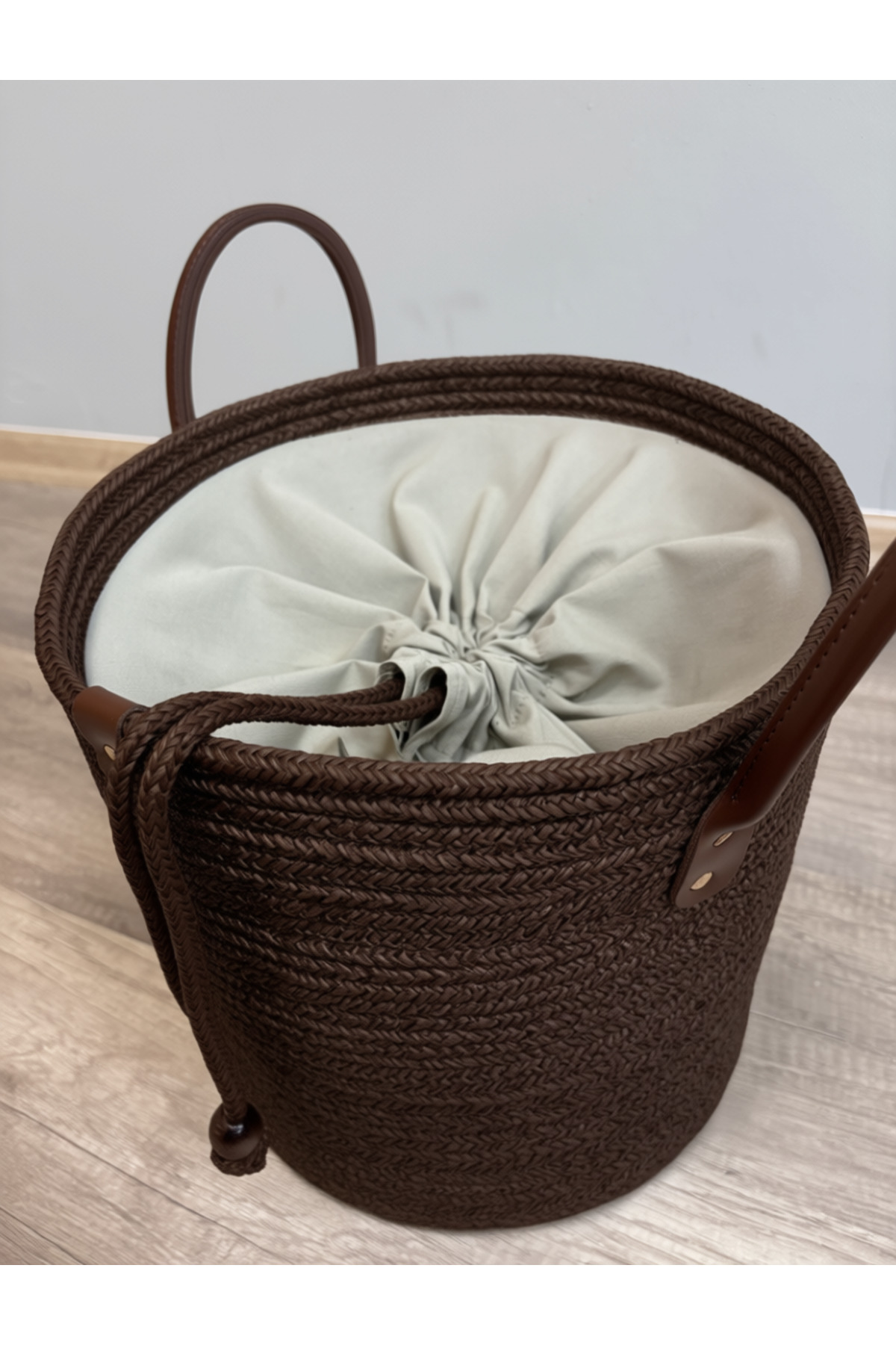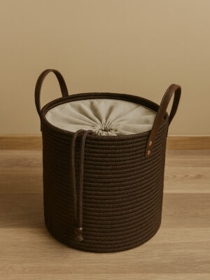 Cinchy Büzgü Astarlı, Dekoratif Deri Saplı, 36 cm X 40 cm Dayanıklı Toparlayıcı Sepet