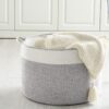 Clover Özel Pamuklu Saplı Jüt Battaniye Sepeti Hasır Oyuncak Sepeti Jüt Çamaşır Sepeti 40-30