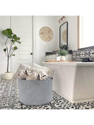 Yüksek kaliteli malzeme: %100 pamuk ip, yumuşak, sağlam ve dayanıklıdır. ; 40 cm zemin, 30 yüksekliği vardır. Bu büyük saklama sepeti daha fazla oyuncak, havlu, battaniye, yastık, giysi, yatak takımı alabilir ve büyük eşyaları alabilir. Battaniye sepeti veya oyuncak sepeti için mükemmeldir. ; Göz Alıcı Tasarım: Bu ekstra büyük dokuma sepet, nötr renkte, sıcak dokunuşlu, modern, estetik bir görünümde mevcuttur, çocuk odası, ev, yatak odası, çocuk odası, aile ve el işi odası için dekor stilinize kolayca uyum sağlar ; Kenarları keskin olmadığı için çocuklar ve evcil hayvanlar için çok uygundur ; Evinizi hem düzenleyip hem de şıklık katacaktır; Yıkanabilir sepet: elde veya makinede yıkanabilir. Sepet katlanabilir. ;