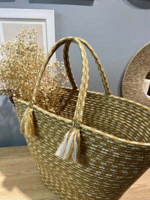 Tüm yaş gruplarına hitap eden tasarımıyla herkesin kullanabileceği bir plaj çantası;; Çevre dostu tercihleriniz için geri dönüştürülebilir ve organik materyallerden üretilmiştir;; İmitasyon deri detayları ile şık ve dayanıklı bir yapı sunar;; Dokuma kumaş tipi sayesinde uzun ömürlü kullanım vaat eder;; Type 4 yıkama talimatına uygun şekilde kolayca temizlenebilir;; Plaj tekstil koleksiyonunun bir parçası olarak, plaj modasına uygun estetik bir görünüm sağlar;; Jüt materyali ile doğal dokunuşu hissettiren bir deneyim sunar;; Organik ek özellikleriyle sürdürülebilir moda anlayışını destekler; ;; Beachwear ortamları için idealdir; plajda şıklığınızı tamamlar; ;; Düz deseniyle sade ve zamansız bir tarz yaratır;;