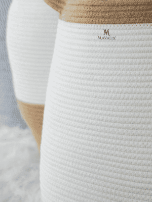 - Çok Amaçlı, 41cm-46cm, Beyaz Jüt Şeritli, Sepet, Jüt, Hasır, Dokuma Sepet, Düzenleyici