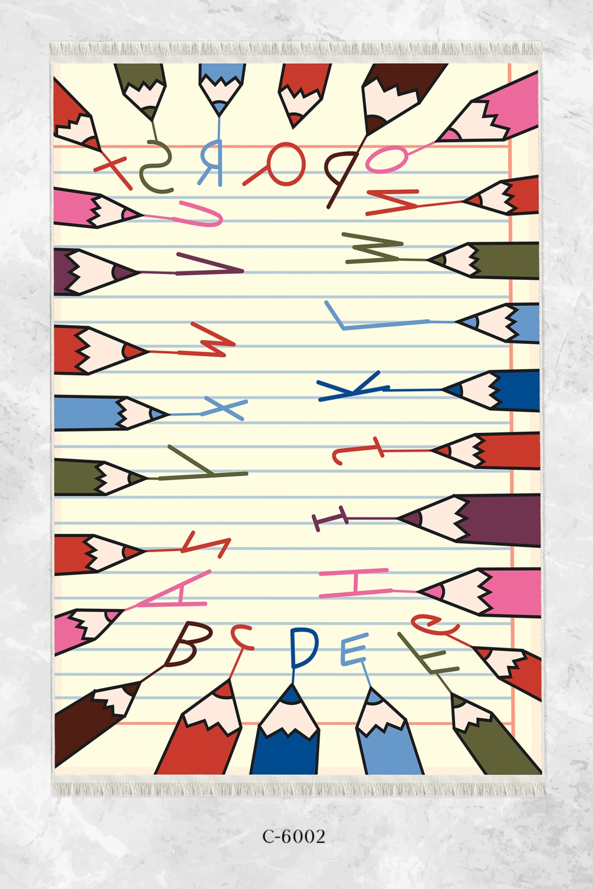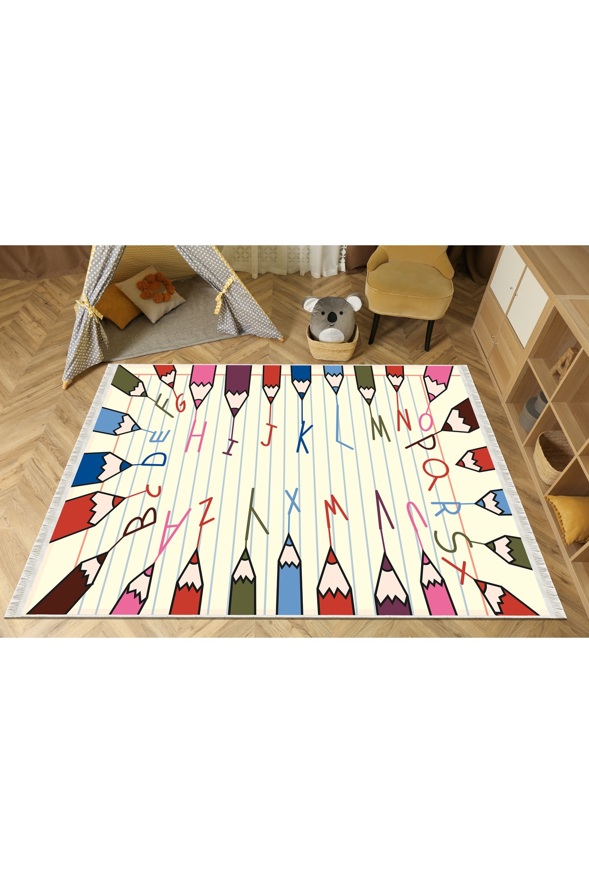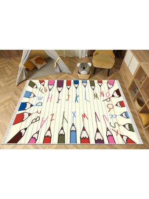 Dijital Baskı Kaymaz Taban Makinede Yıkanabilir Alfabe Desenli Çocuk Odası Halısı