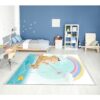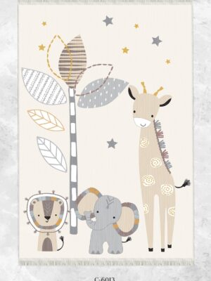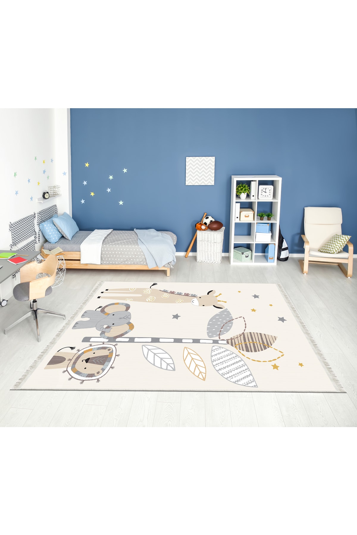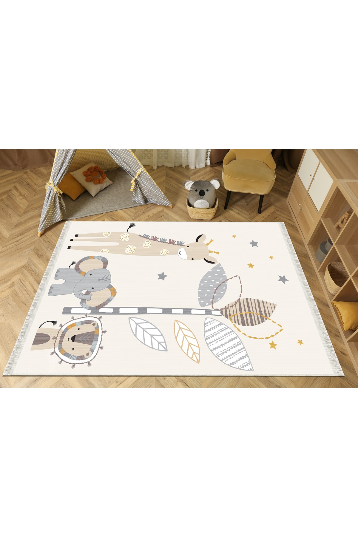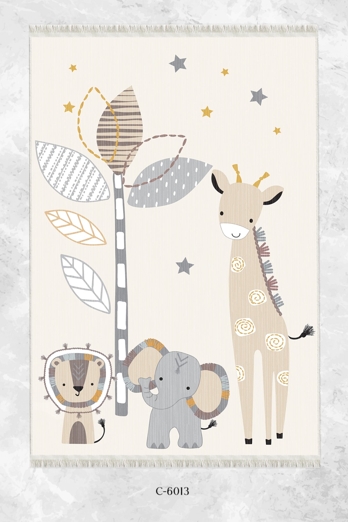 Dijital Baskı Kaymaz Taban Makinede Yıkanabilir Hayvanlar Dünyası Desenli Çocuk Odası Halısı