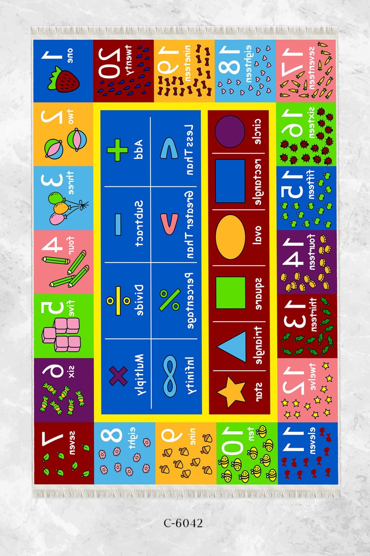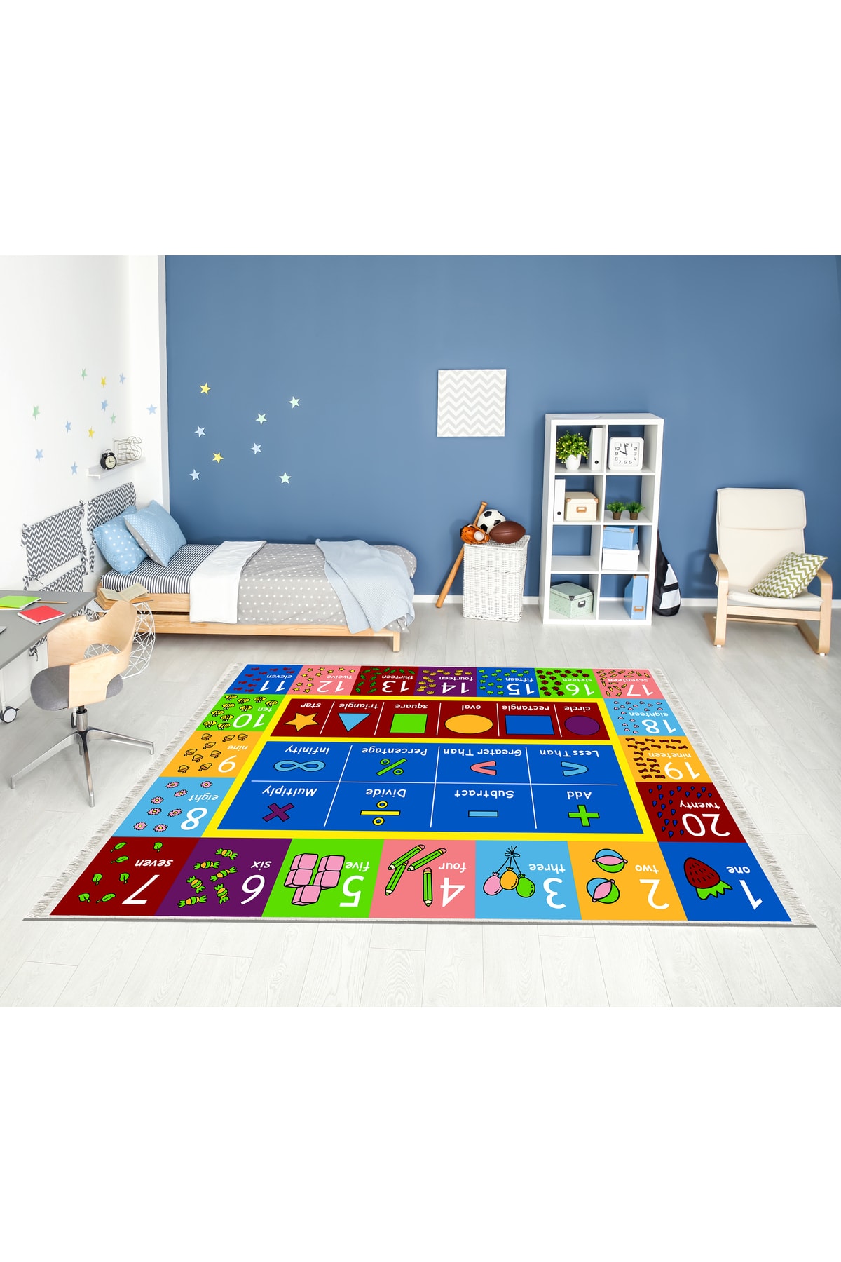 Dijital Baskı Kaymaz Taban Makinede Yıkanabilir Ingilizce Öğreten Desenli Çocuk Odası Halısı