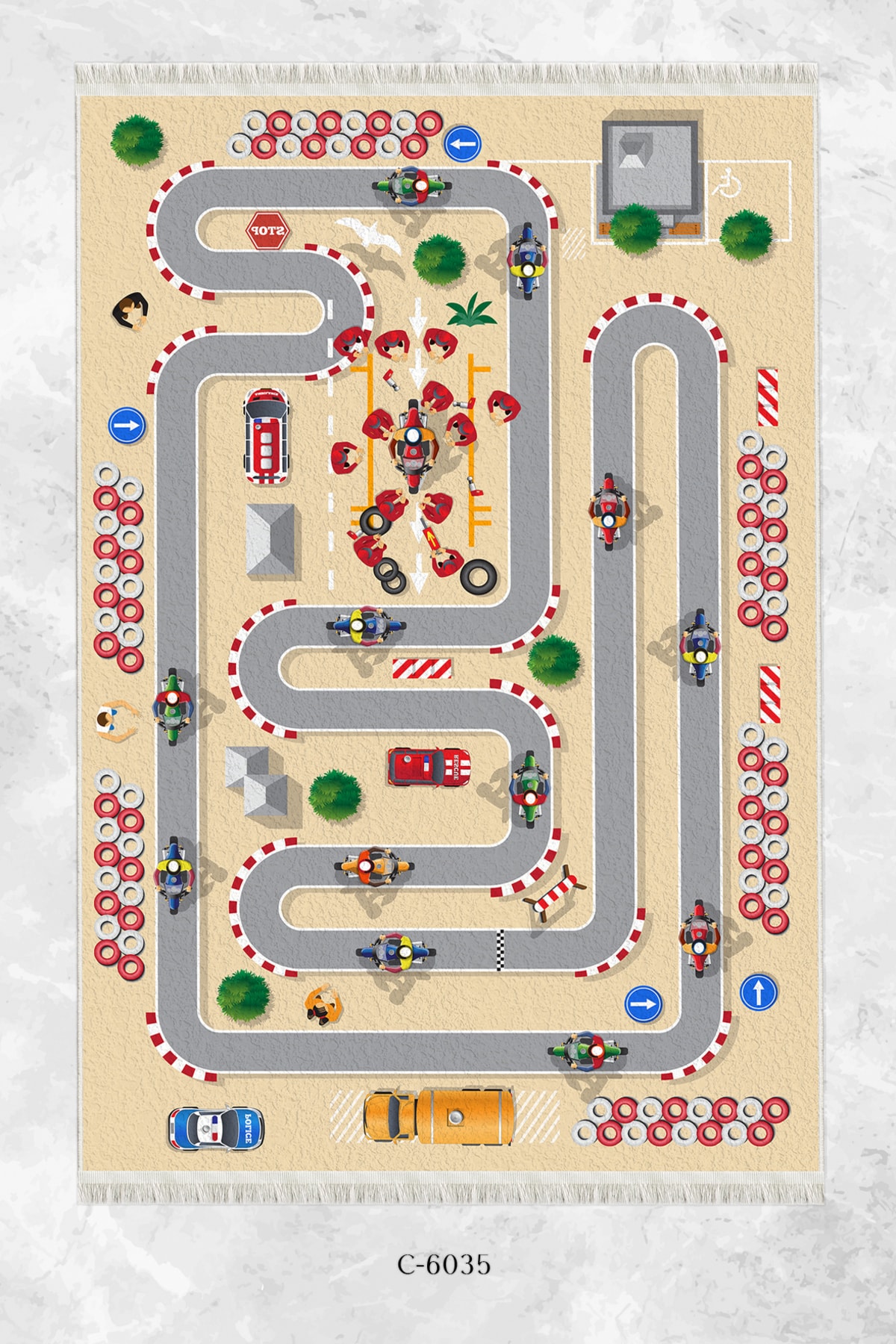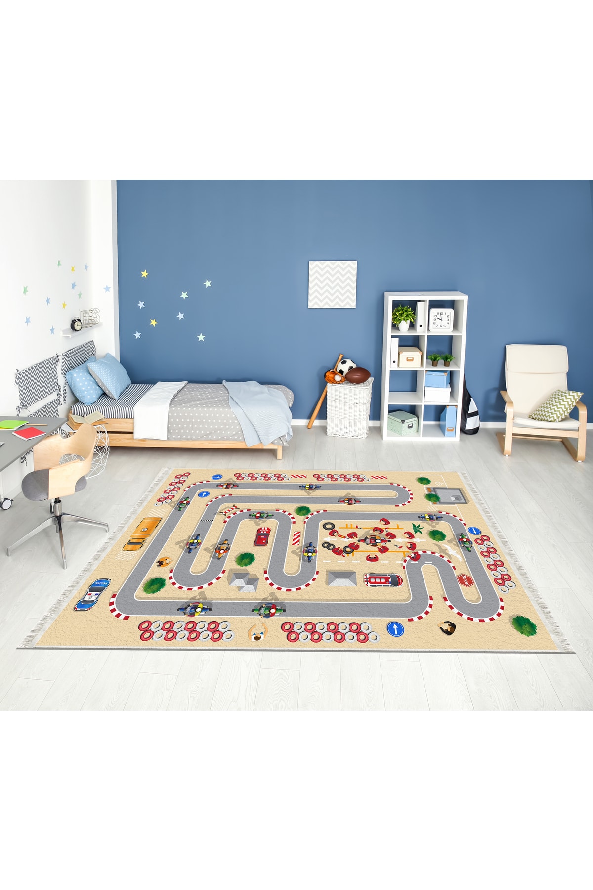 Dijital Baskı Kaymaz Taban Makinede Yıkanabilir Motor Ralli Desenli Çocuk Odası Halısı