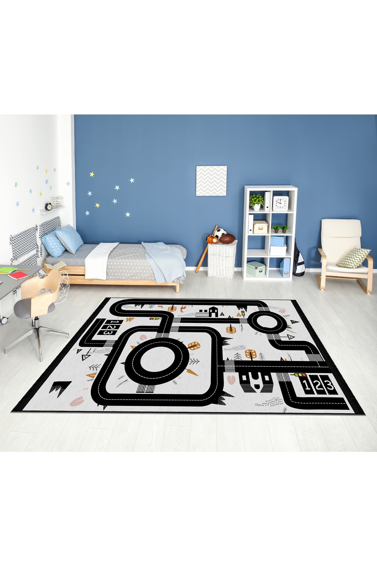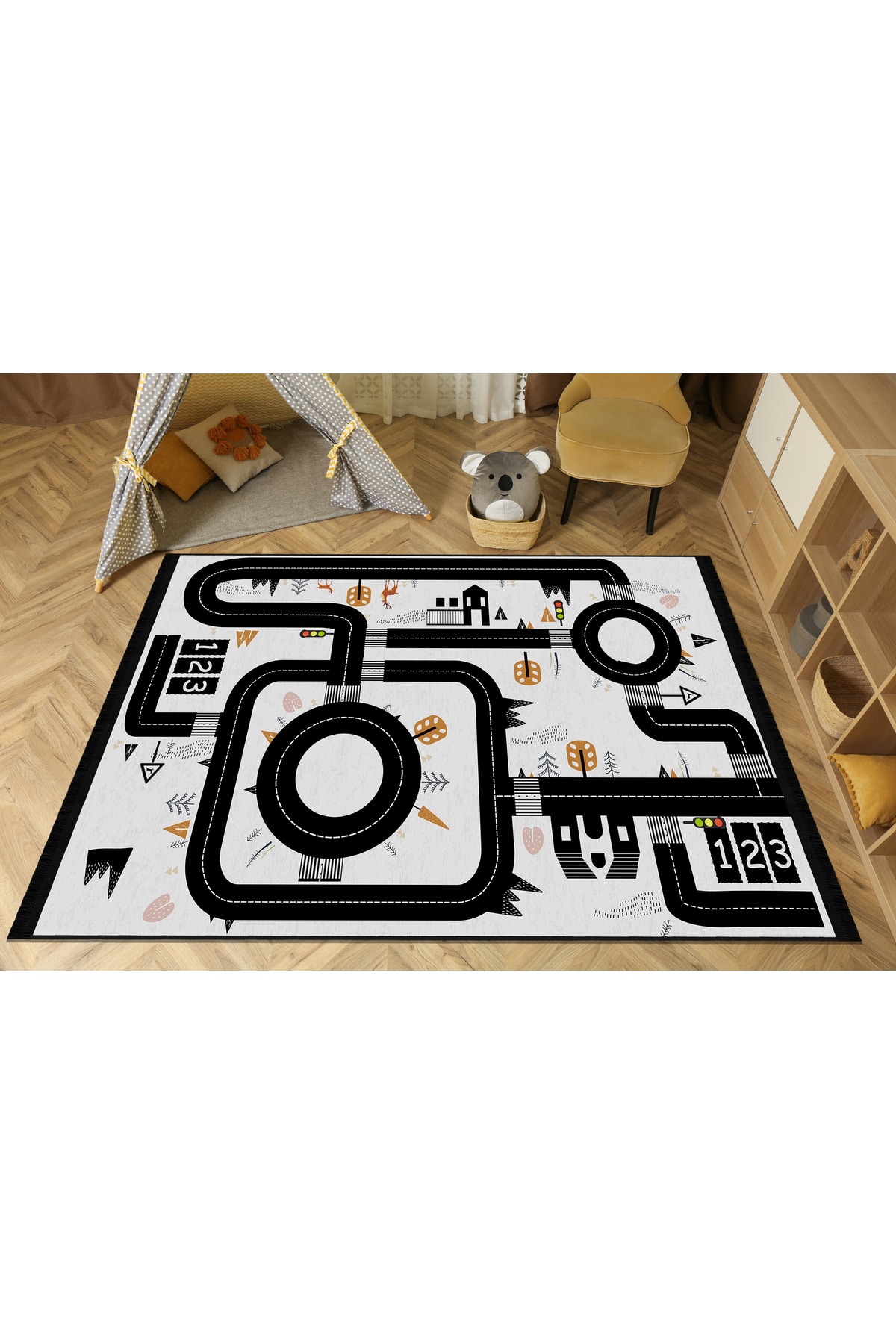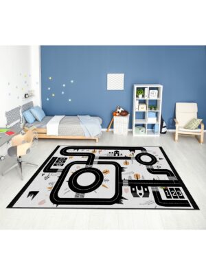 Dijital Baskı Kaymaz Taban Makinede Yıkanabilir Öğretici Trafik Desenli Çocuk Odası Halısı