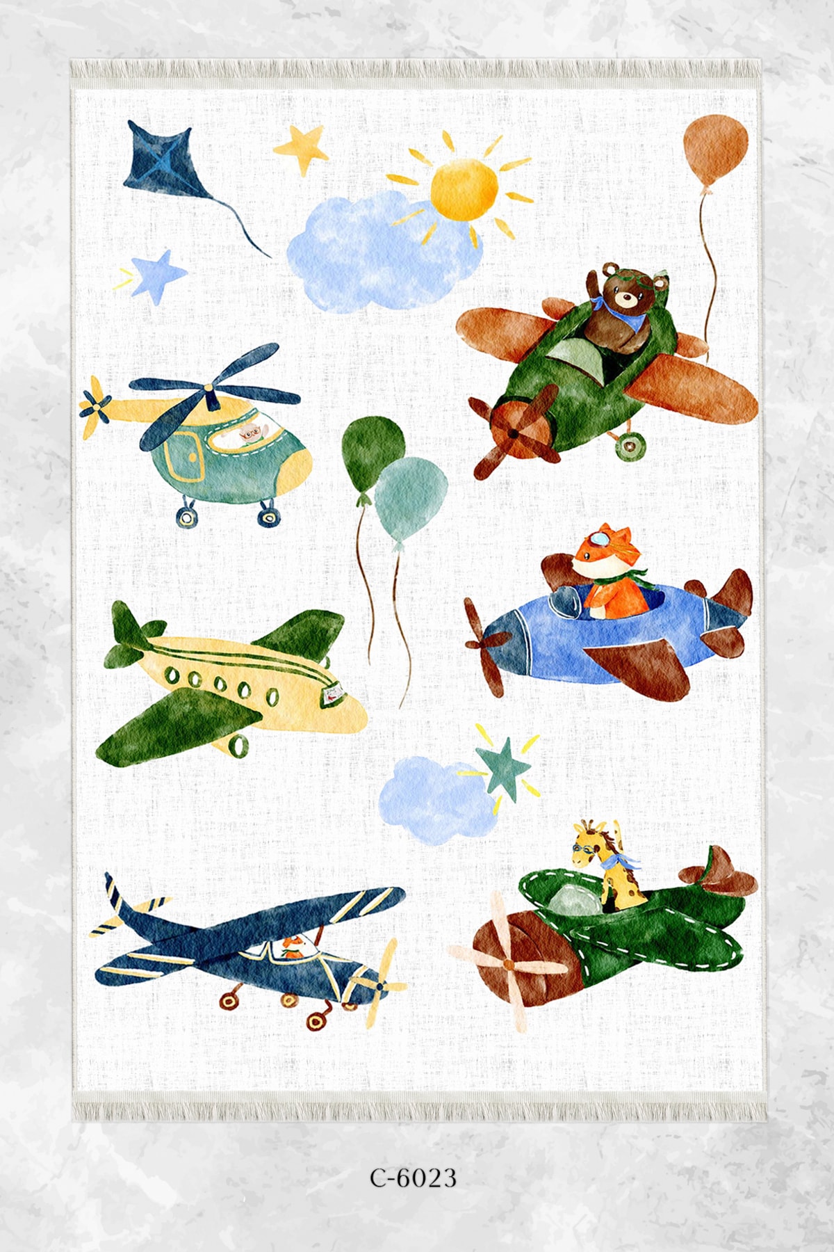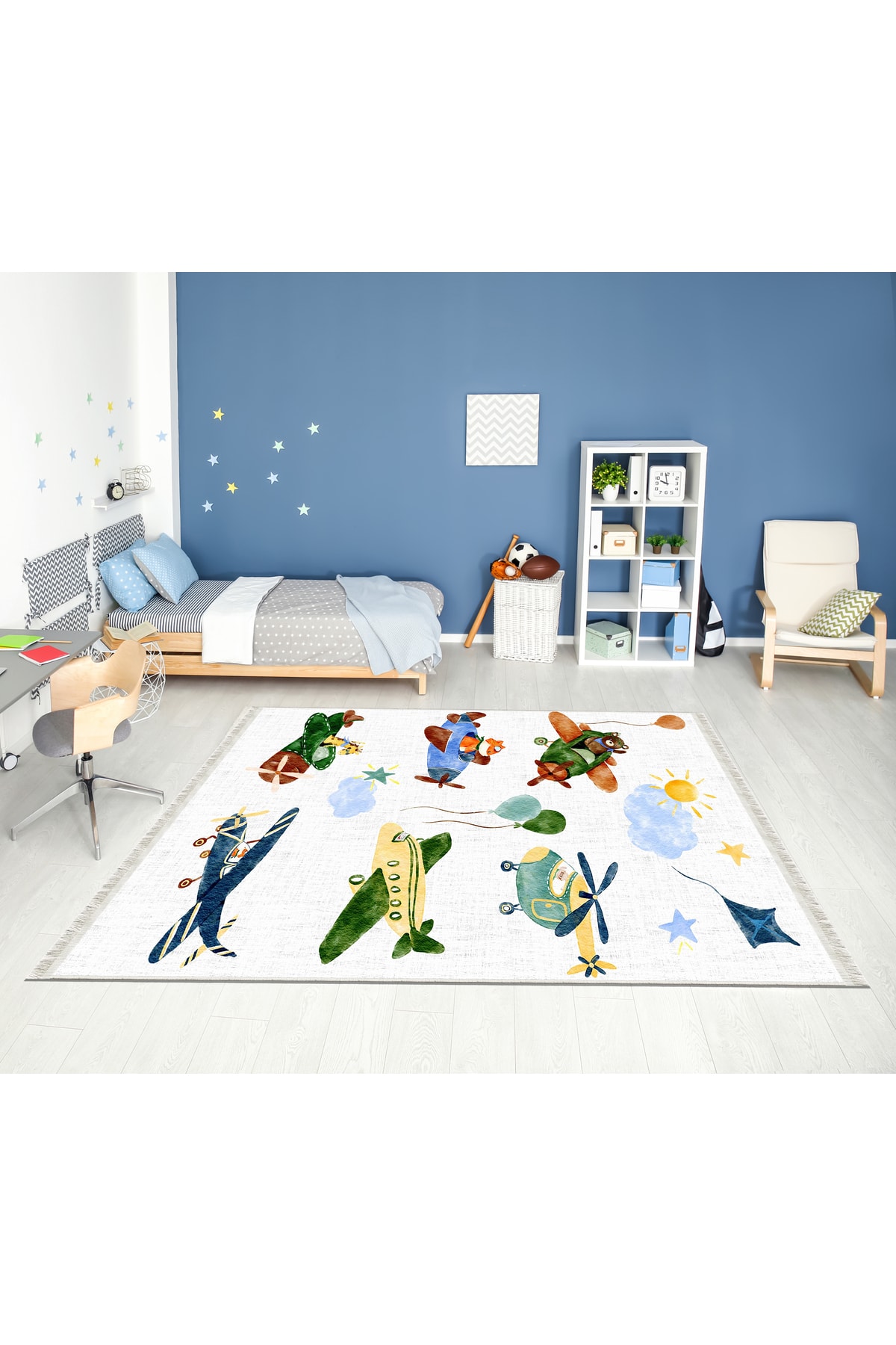 Dijital Baskı Kaymaz Taban Makinede Yıkanabilir Uçan Hayvanlı Desenli Çocuk Odası Halısı