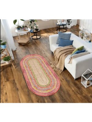 Etnik Çizgi Baskılı Jüt Görünümlü Dijital Baskılı Kilim, Çift Taraflı Örme Üzeri Baskı Jüt Kilim