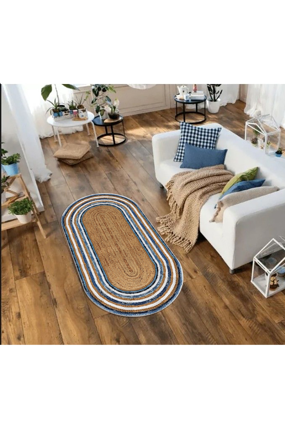 Etnik Çizgi Baskılı Jüt Görünümlü Dijital Baskılı Kilim, Çift Taraflı Örme Üzeri Baskı Jüt Kilim