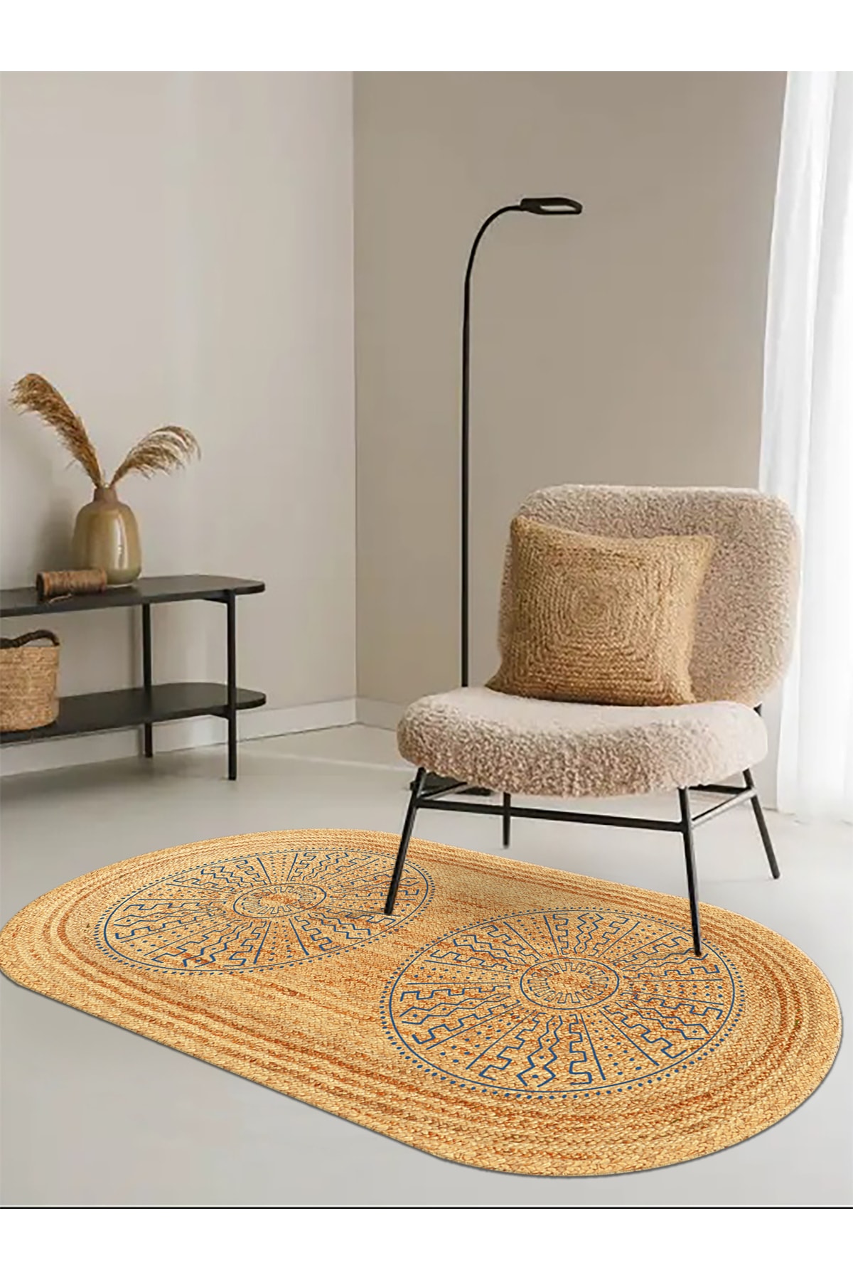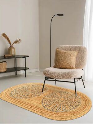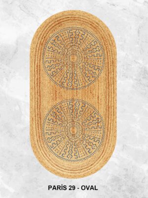 Etnik Desen Baskılı Jüt Görünümlü Dijital Baskılı Kilim, Çift Taraflı Örme Üzeri Baskı Jüt Kilim