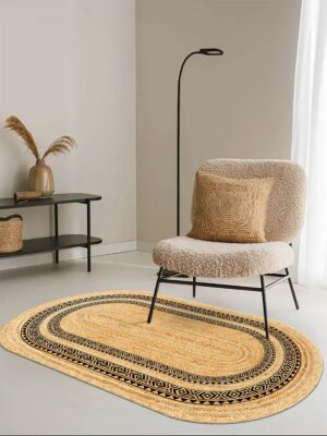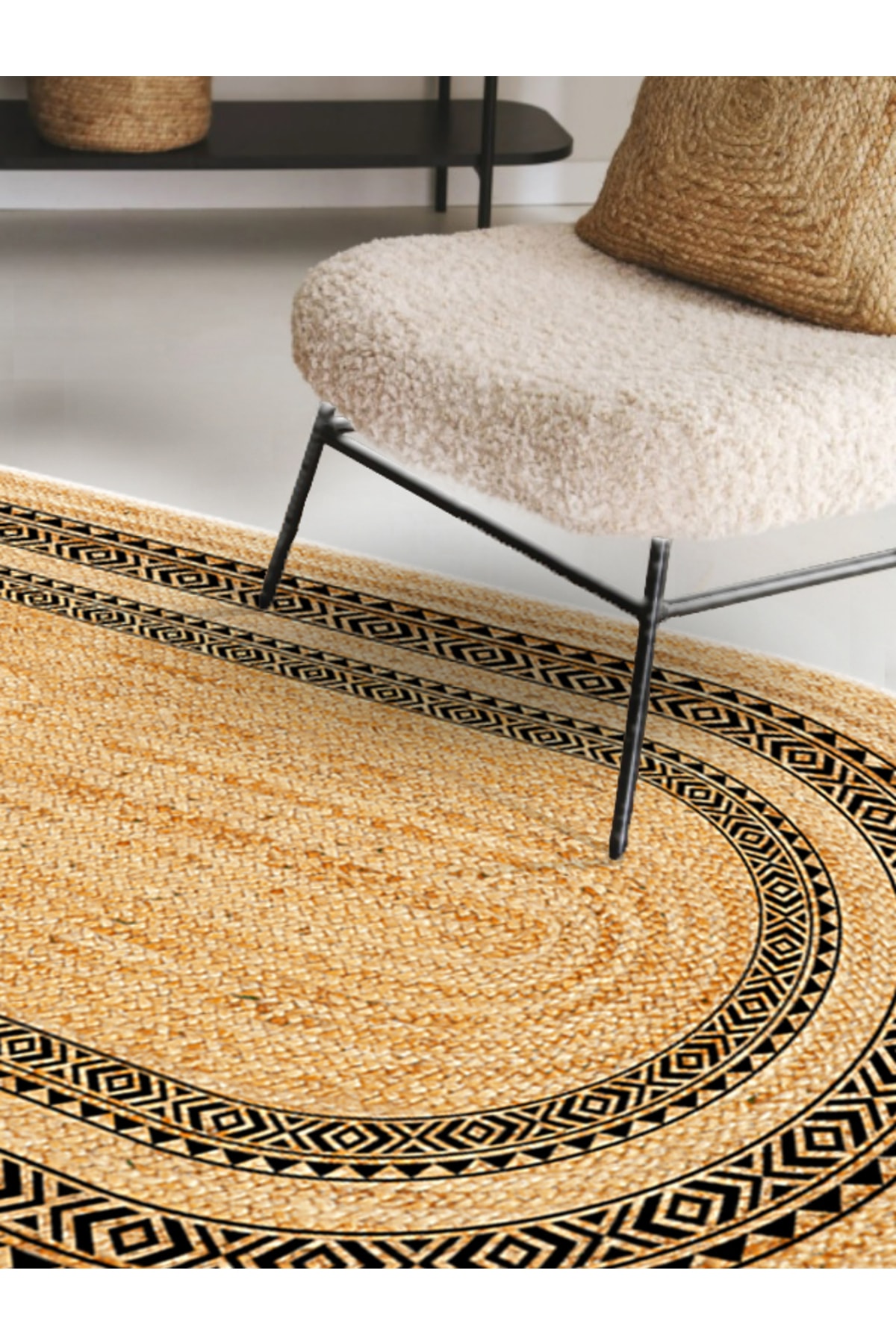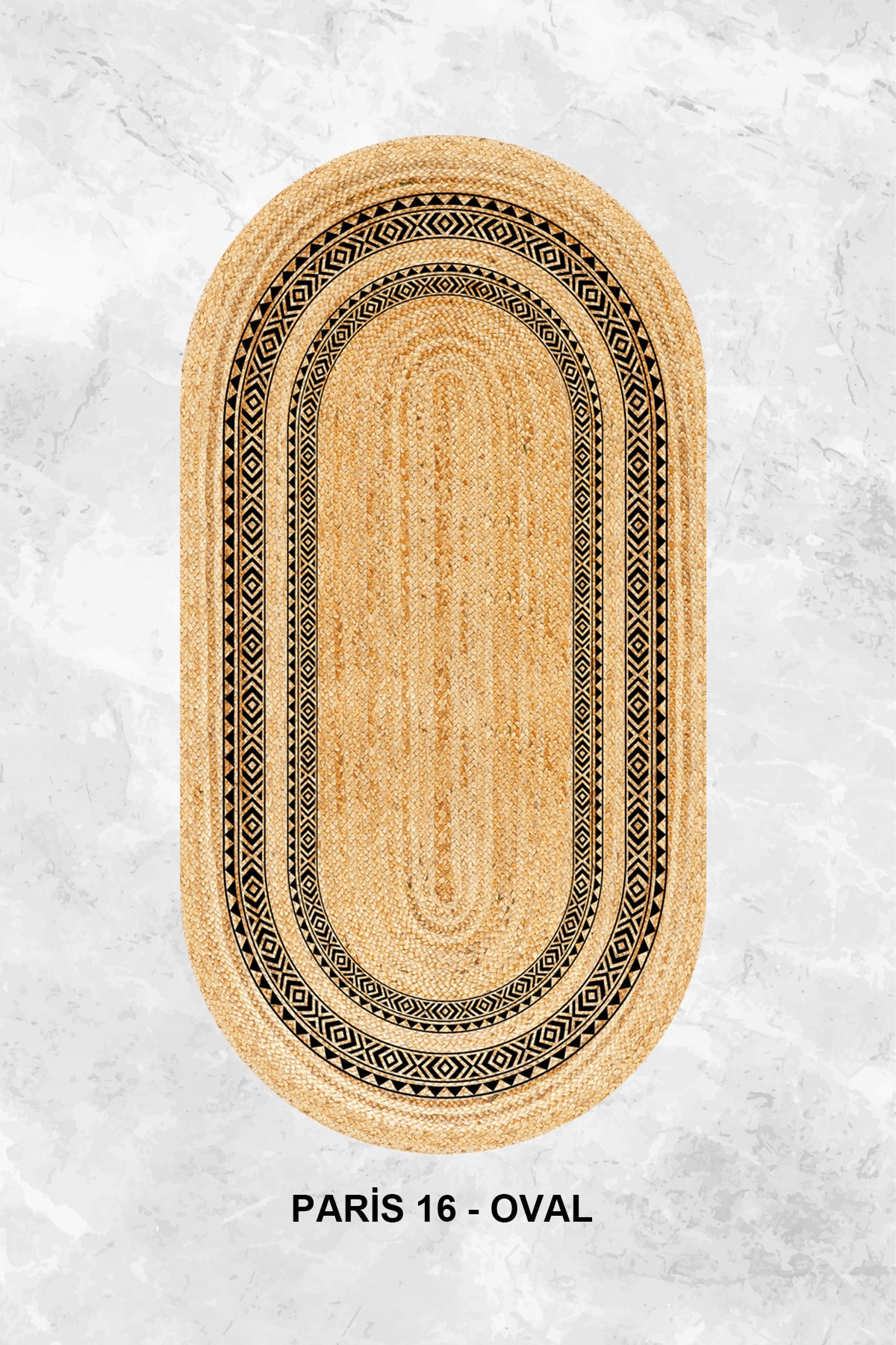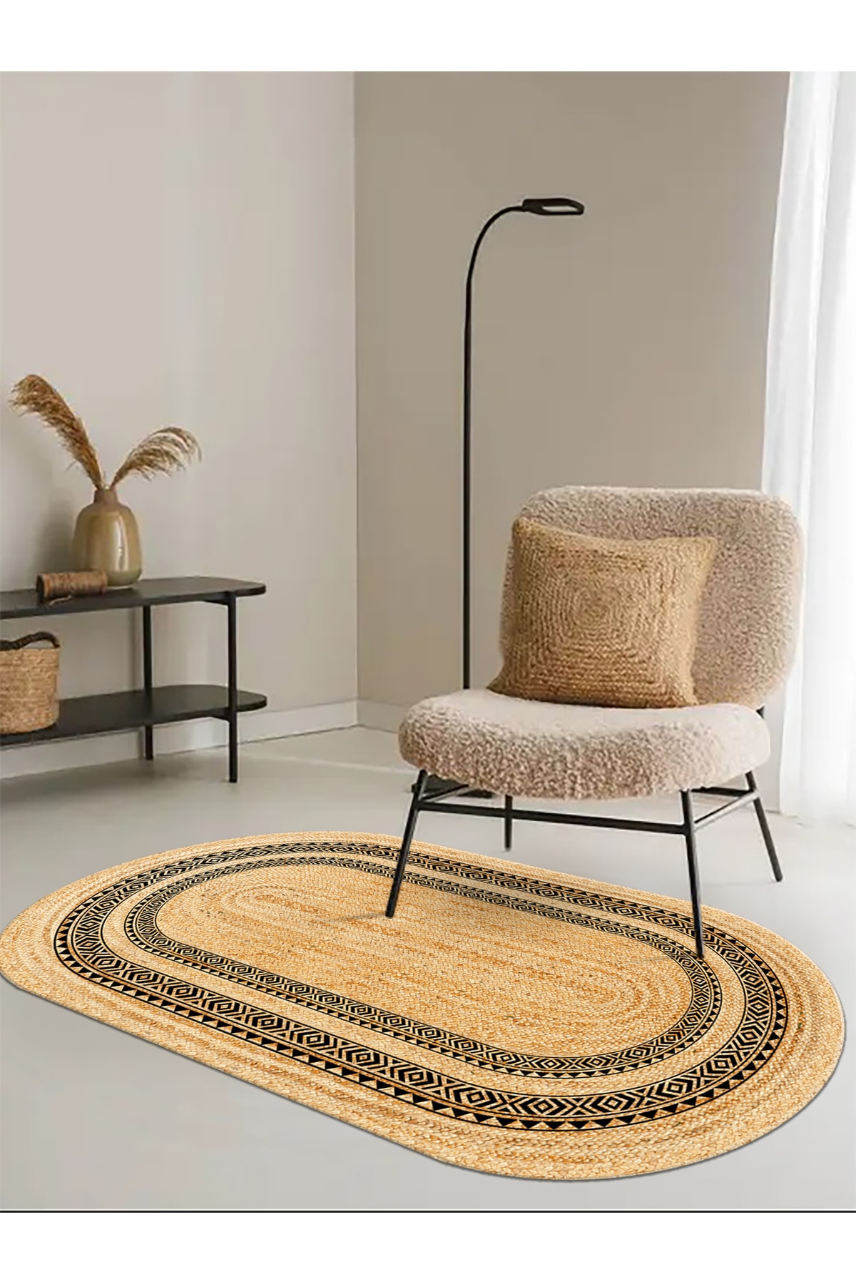 Etnik Desen Baskılı Jüt Görünümlü Dijital Baskılı Kilim, Çift Taraflı Örme Üzeri Baskı Jüt Kilim