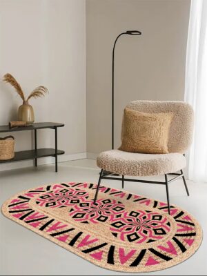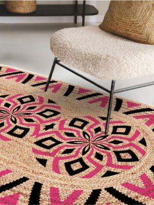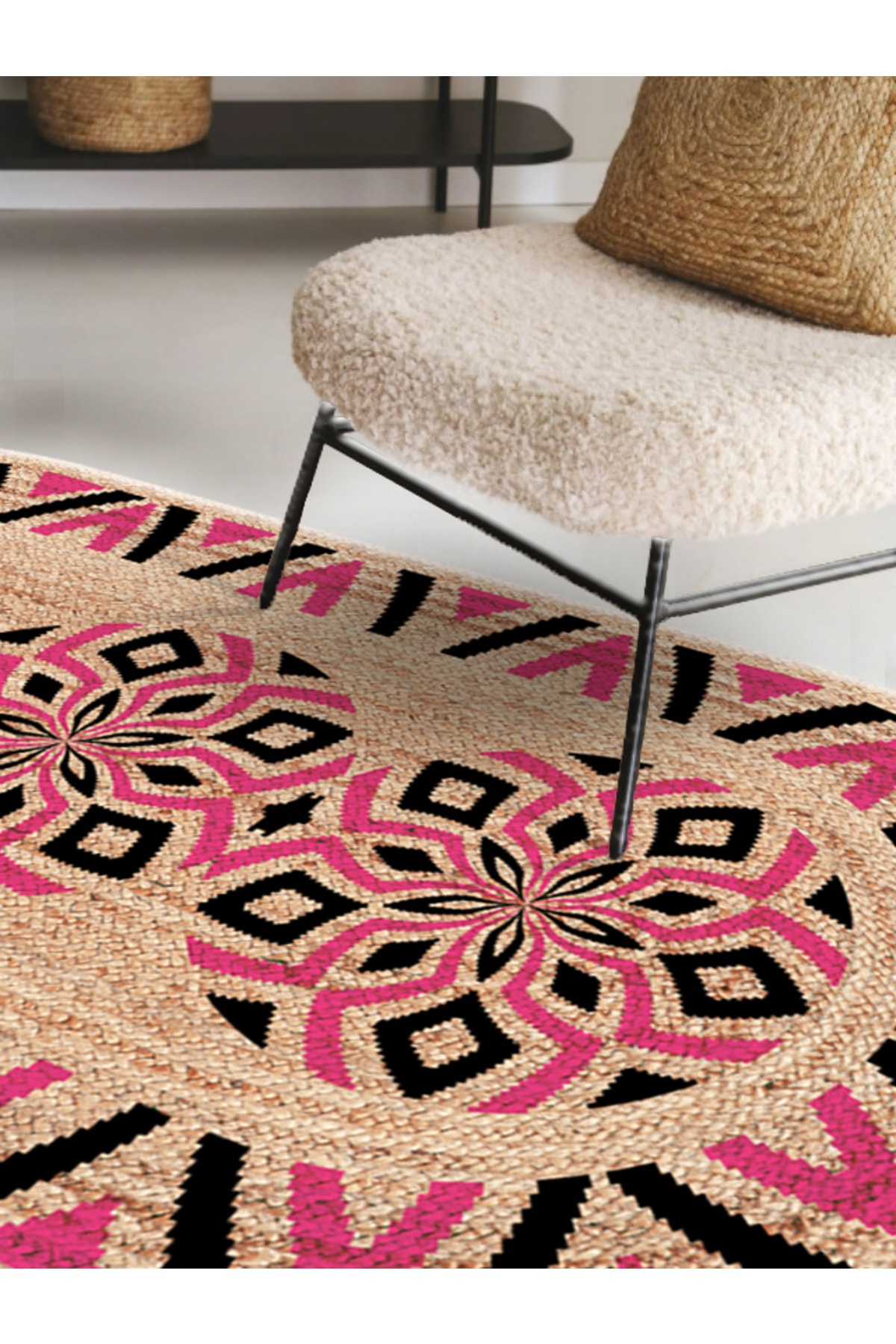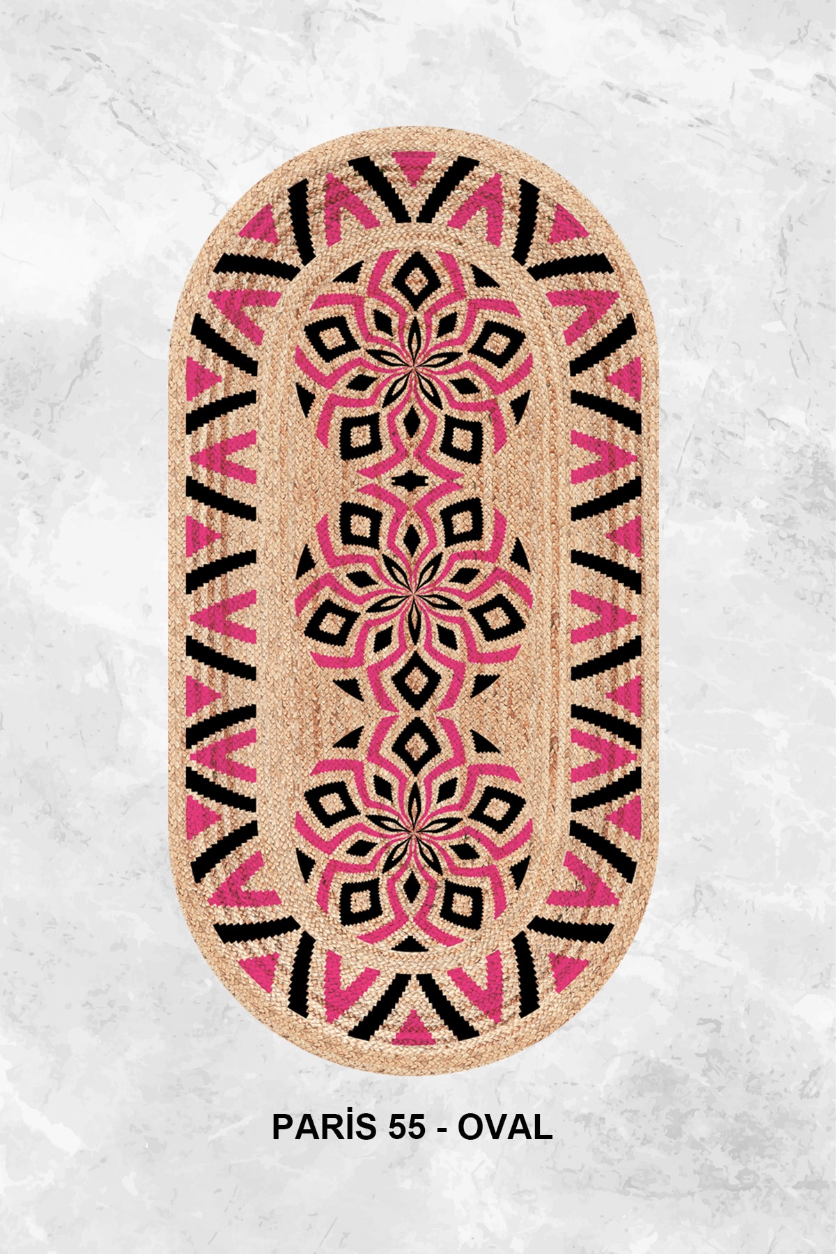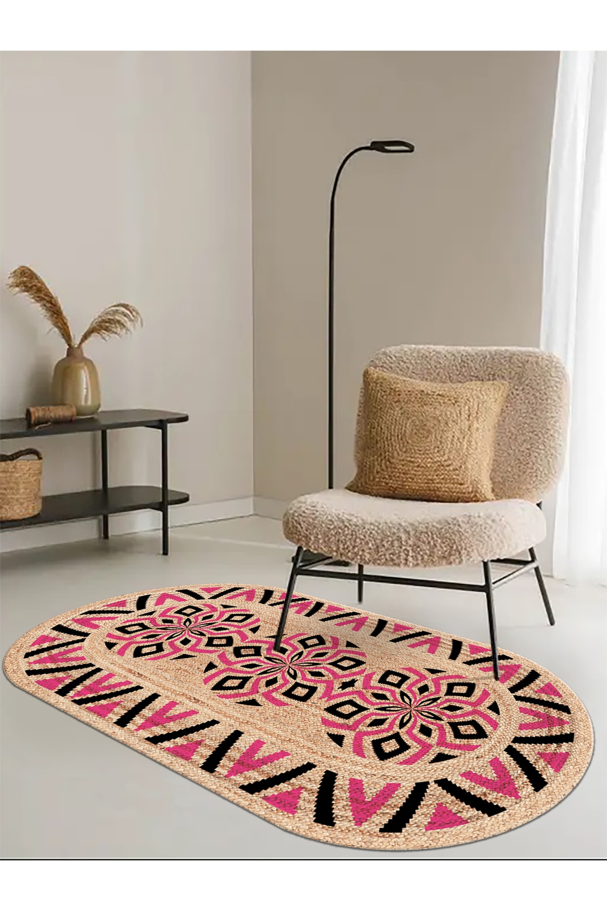 Etnik Desen Baskılı Jüt Görünümlü Dijital Baskılı Kilim, Çift Taraflı Örme Üzeri Baskı Jüt Kilim