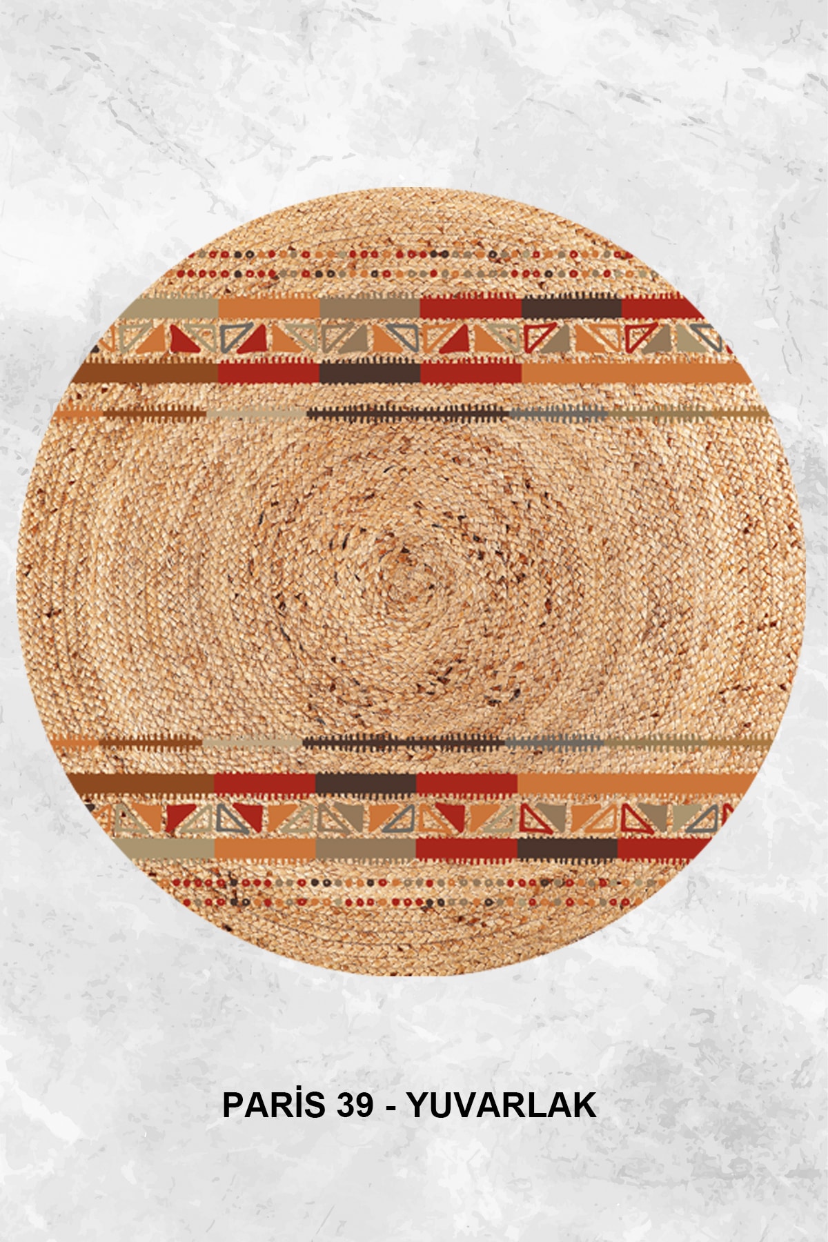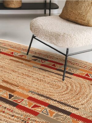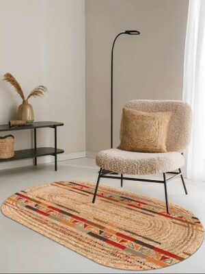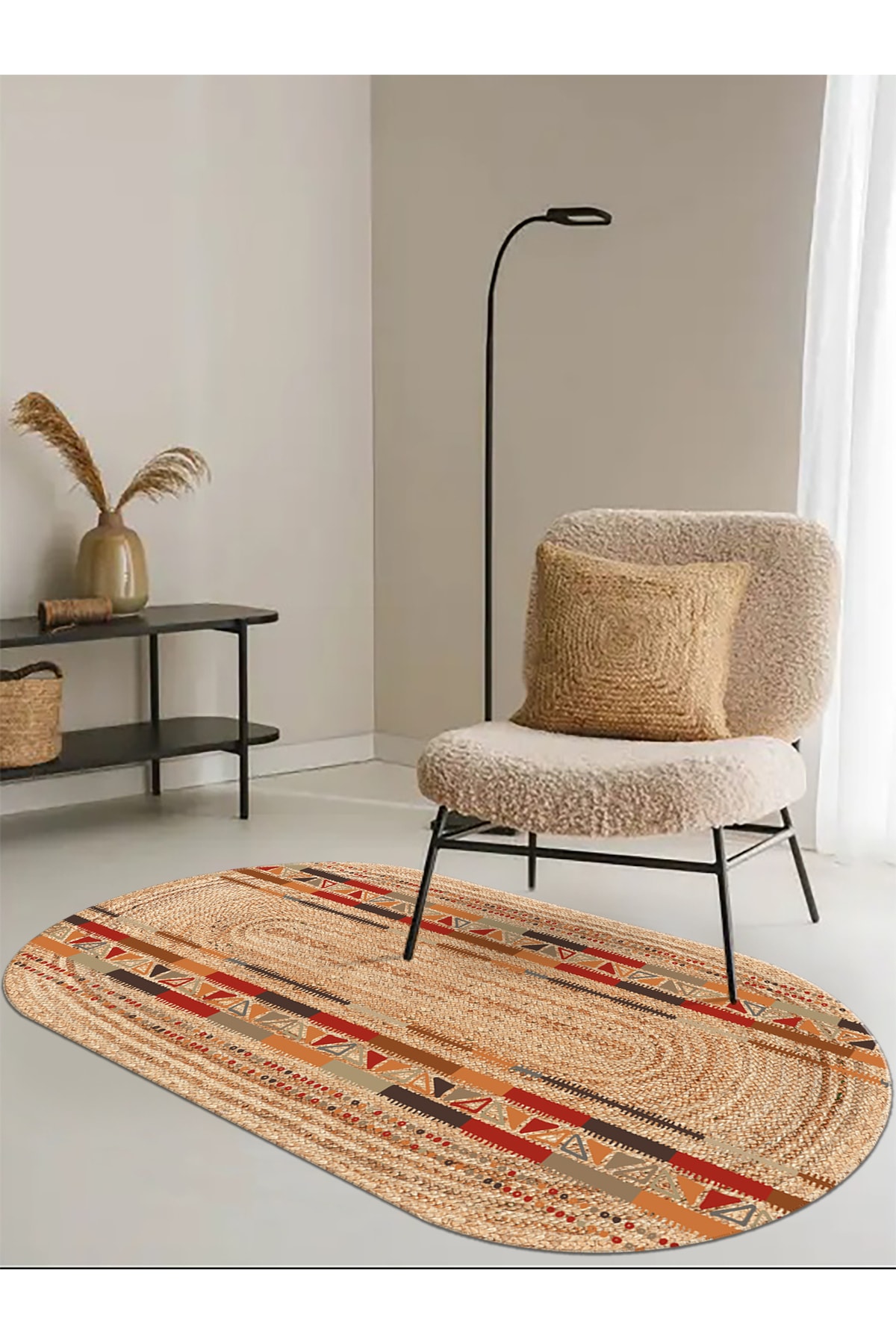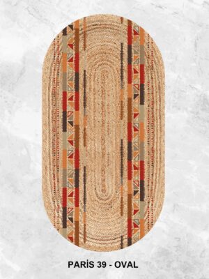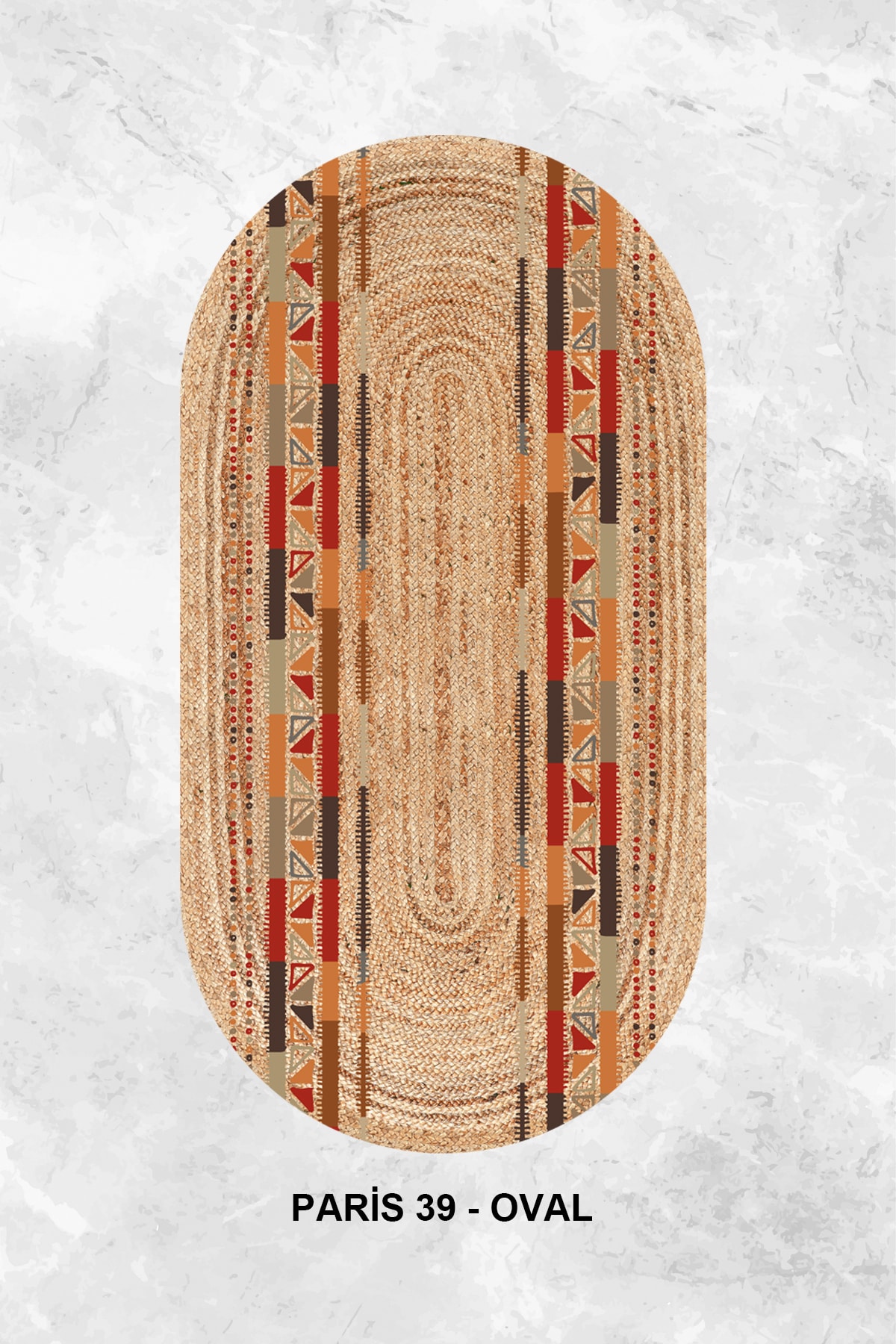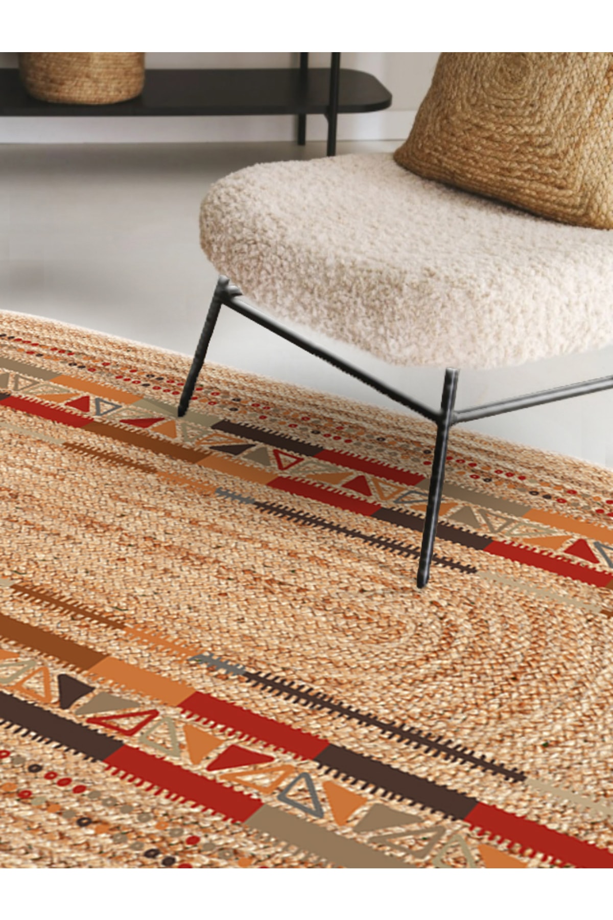 Etnik Desen Baskılı Jüt Görünümlü Dijital Baskılı Kilim, Çift Taraflı Örme Üzeri Baskı Jüt Kilim