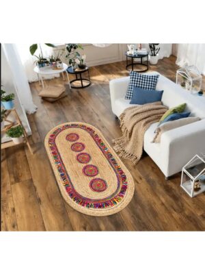Etnik Desen Baskılı Jüt Görünümlü Dijital Baskılı Kilim, Çift Taraflı Örme Üzeri Baskı Jüt Kilim