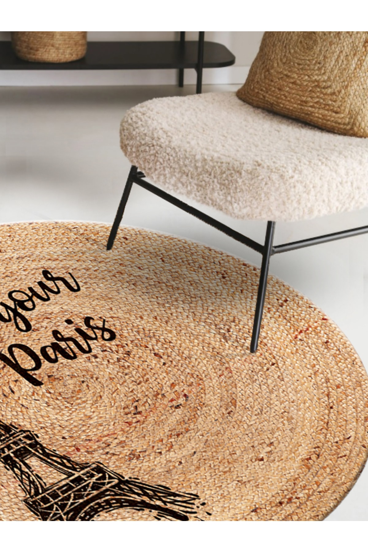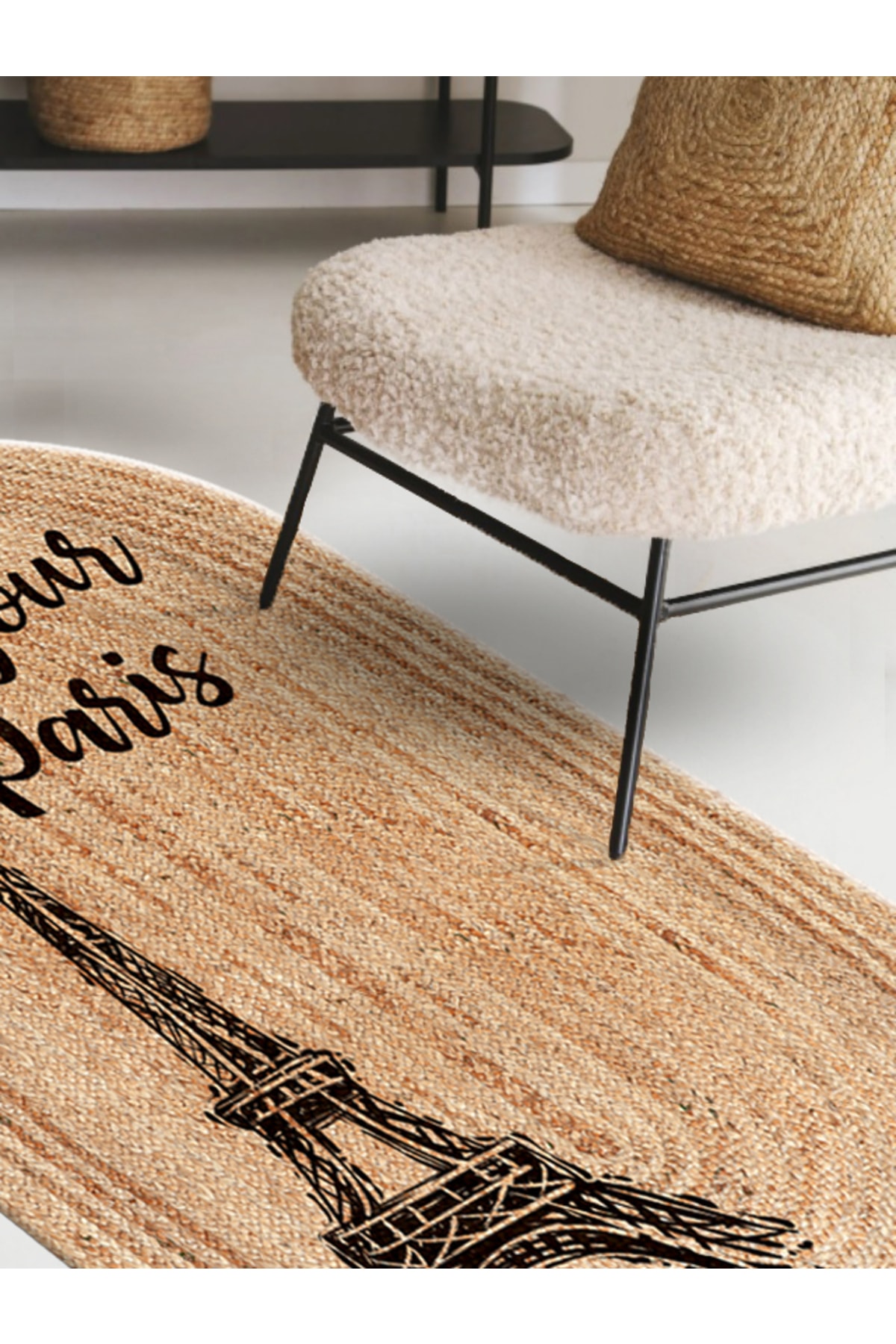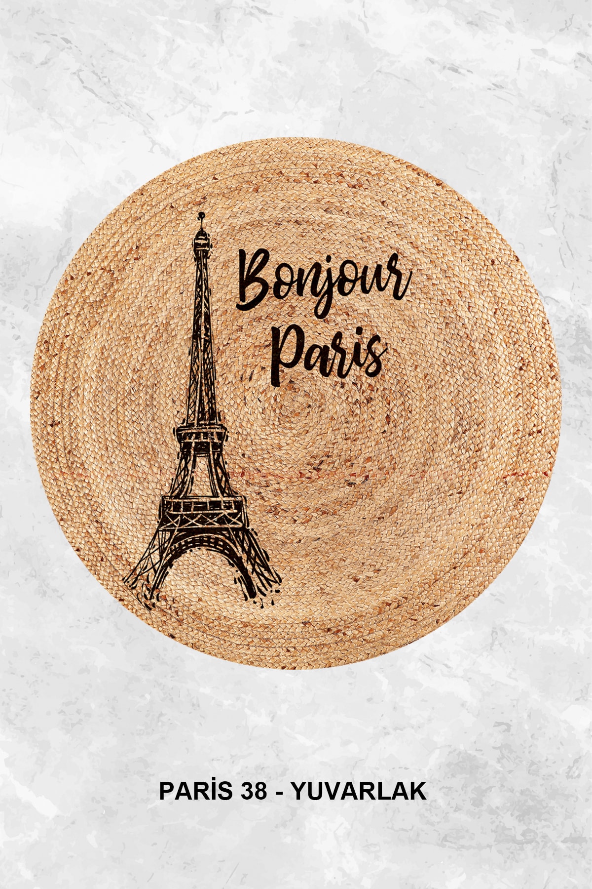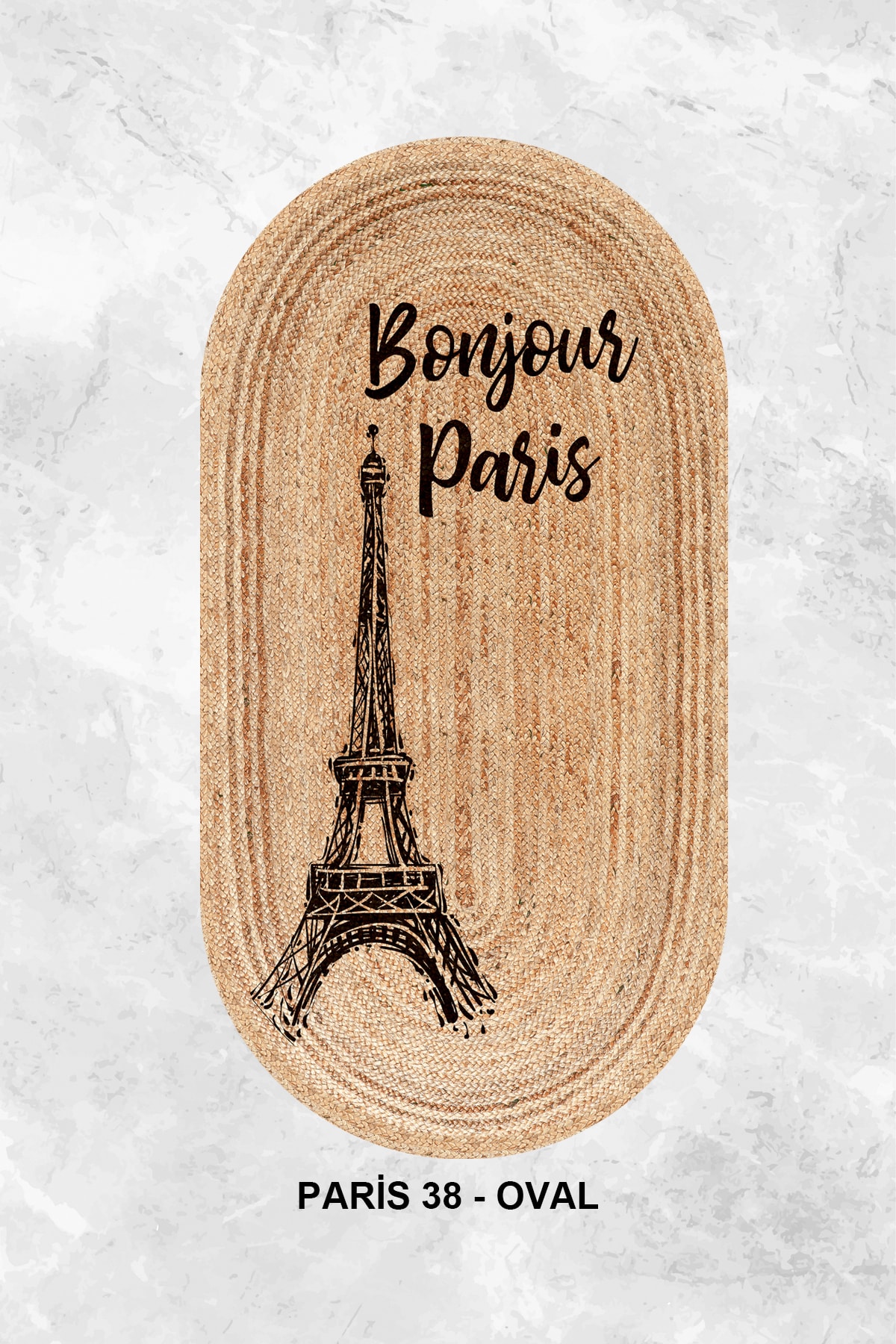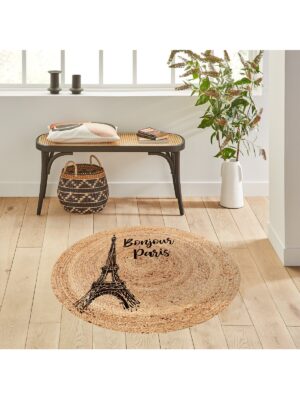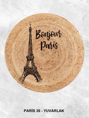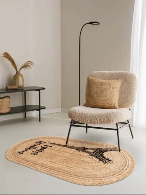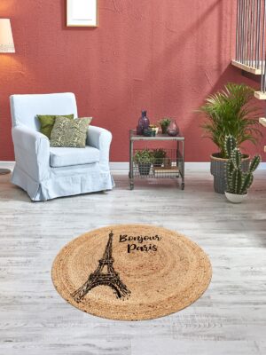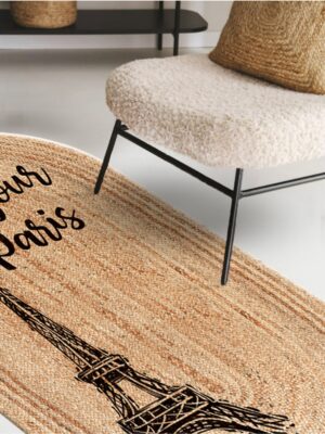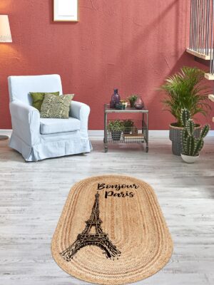 Eyfel Kulesi Baskılı Jüt Görünümlü Dijital Baskılı Kilim, Çift Taraflı Örme Üzeri Baskı Jüt Kilim