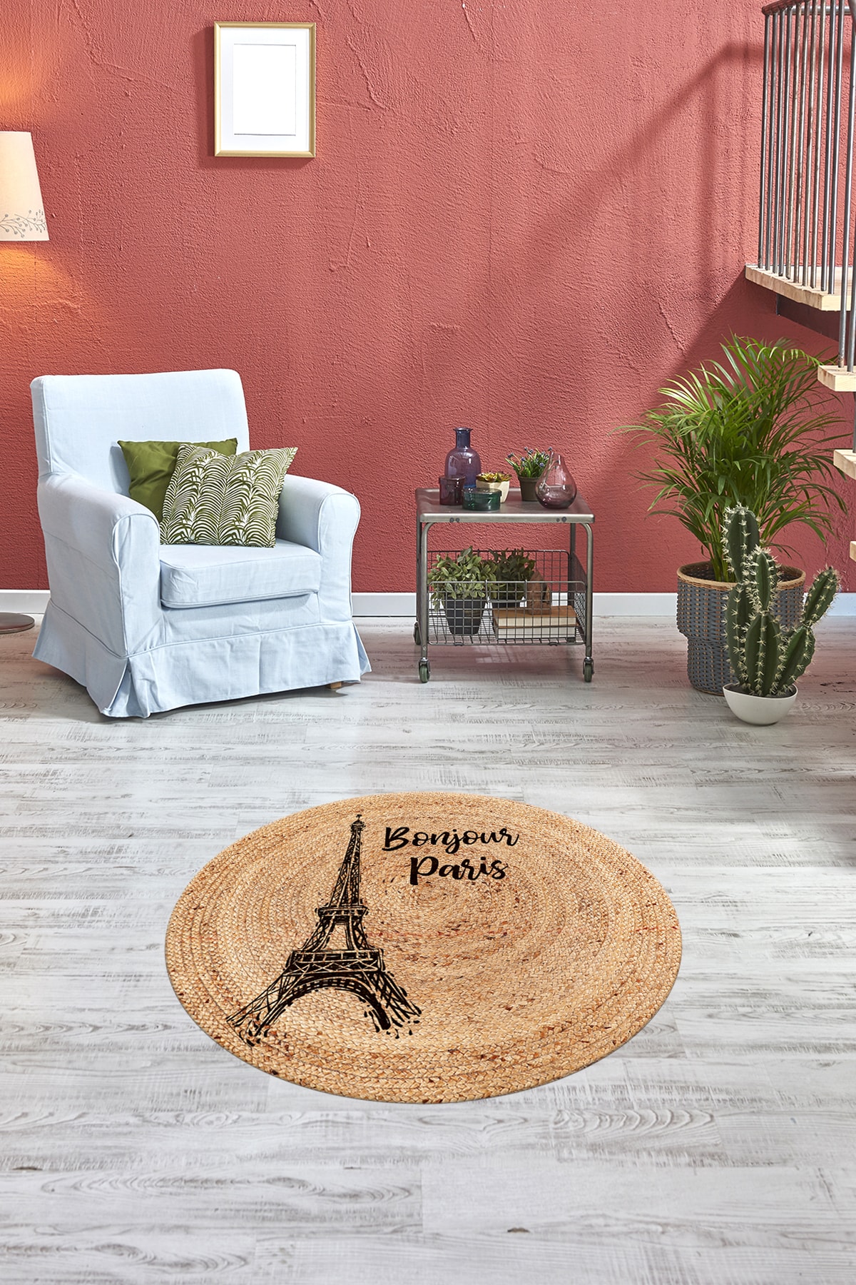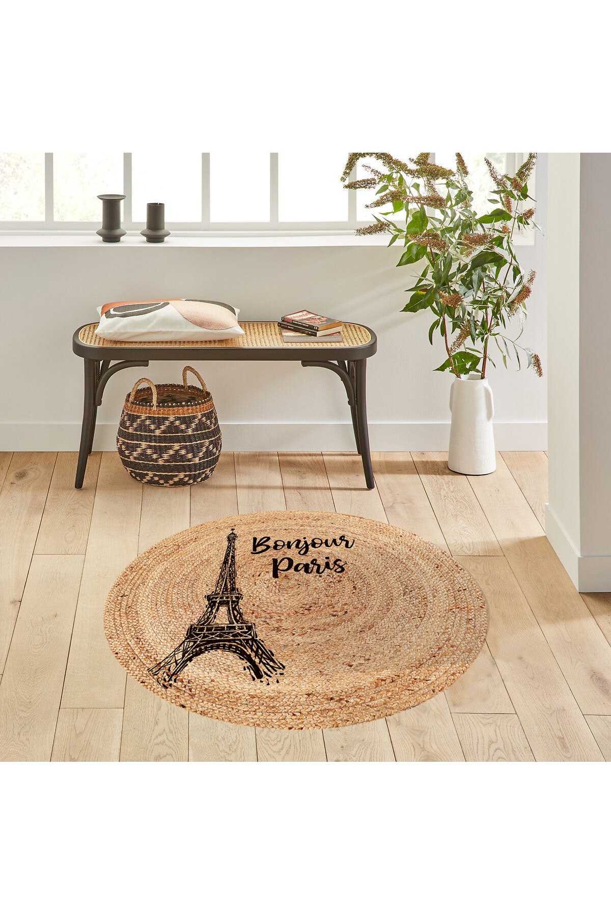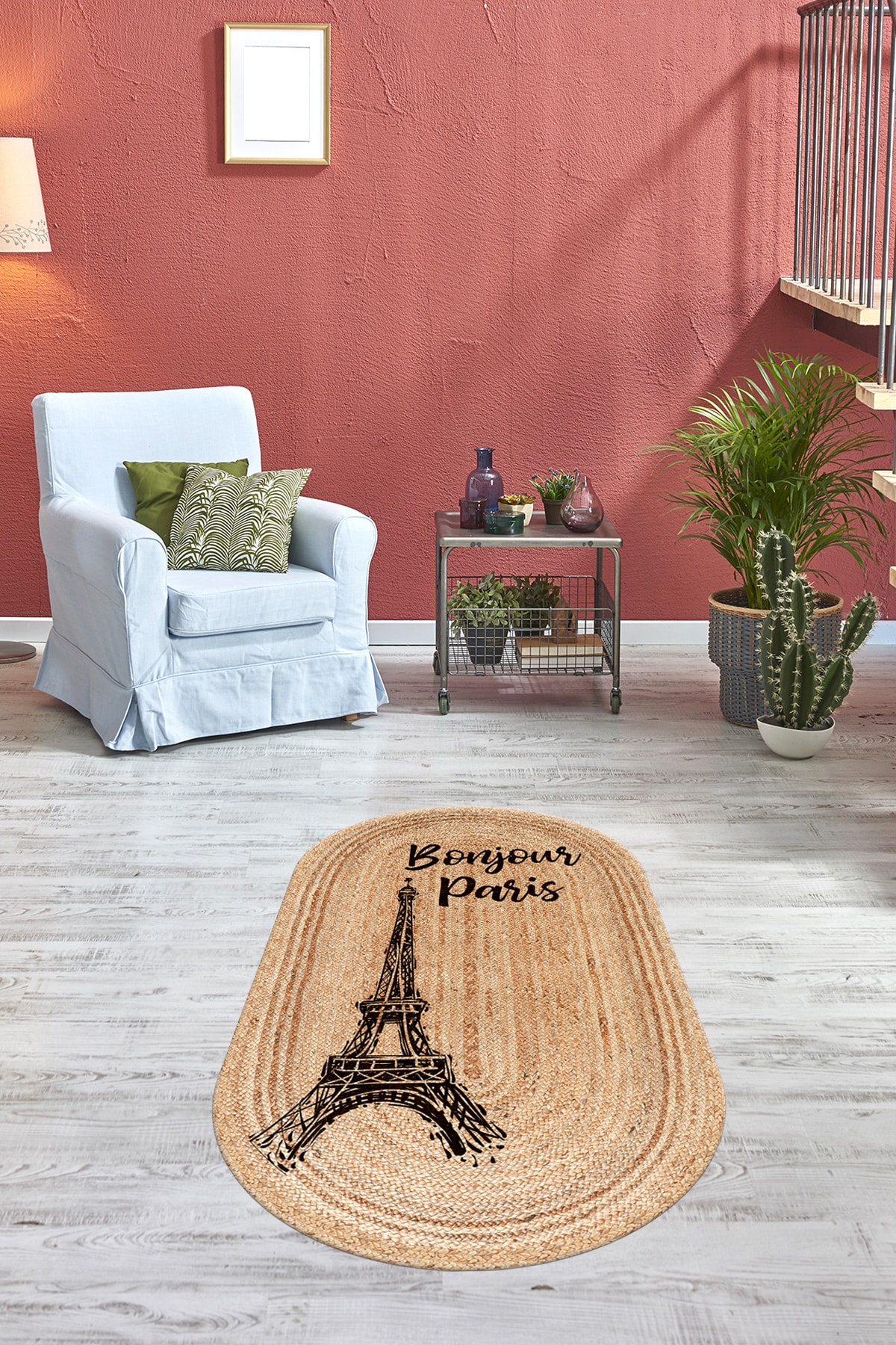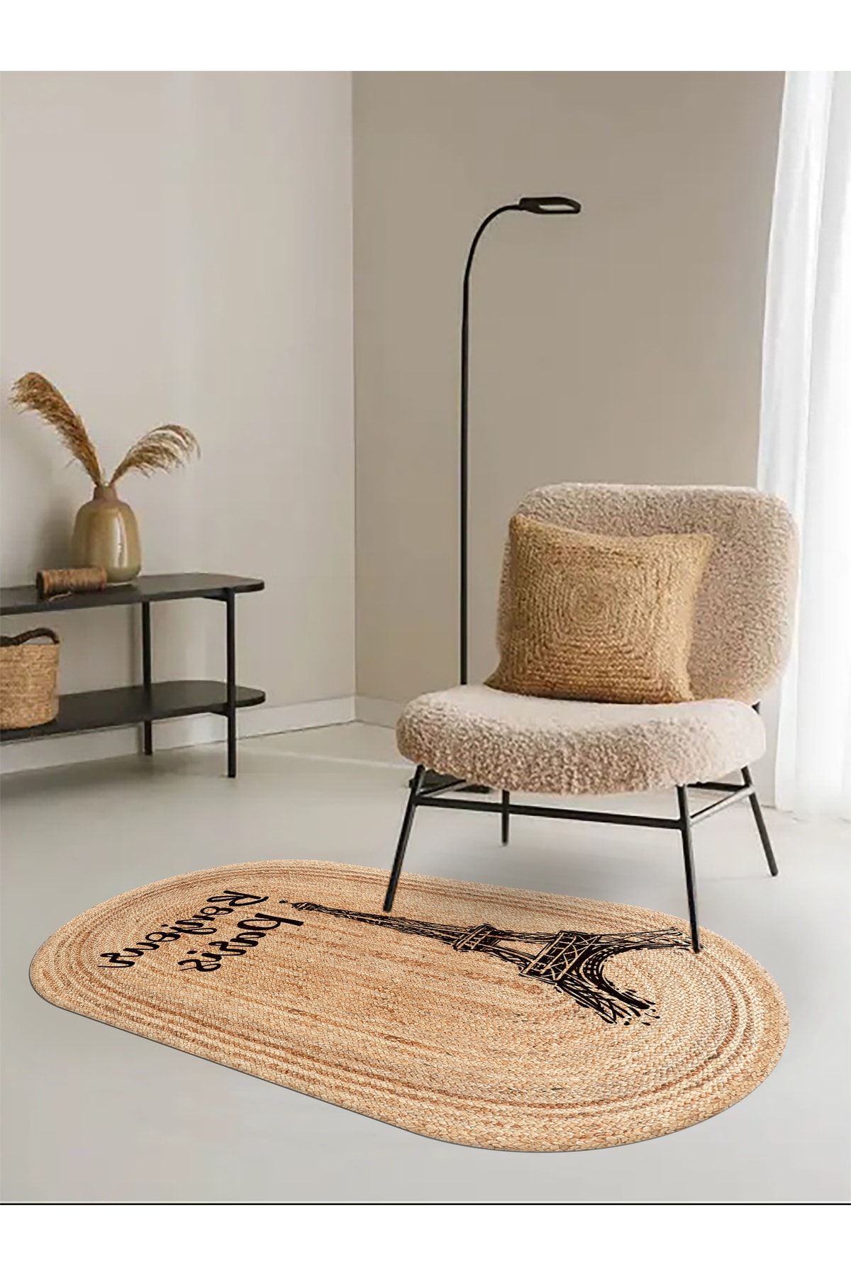 Eyfel Kulesi Baskılı Jüt Görünümlü Dijital Baskılı Kilim, Çift Taraflı Örme Üzeri Baskı Jüt Kilim