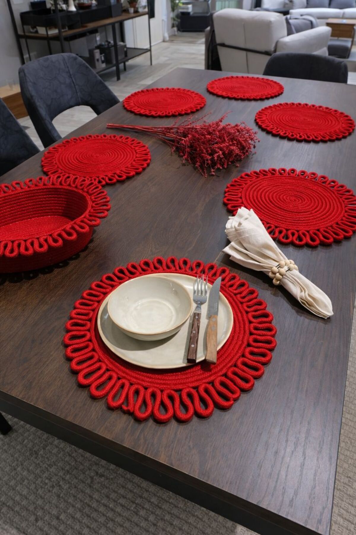 Kalın Işlemeli, 6 – Adet, Amerikan Servis, Jüt Supla, Dayanıklı, Isıya Duyarlı, Uzun Ömürlü,
