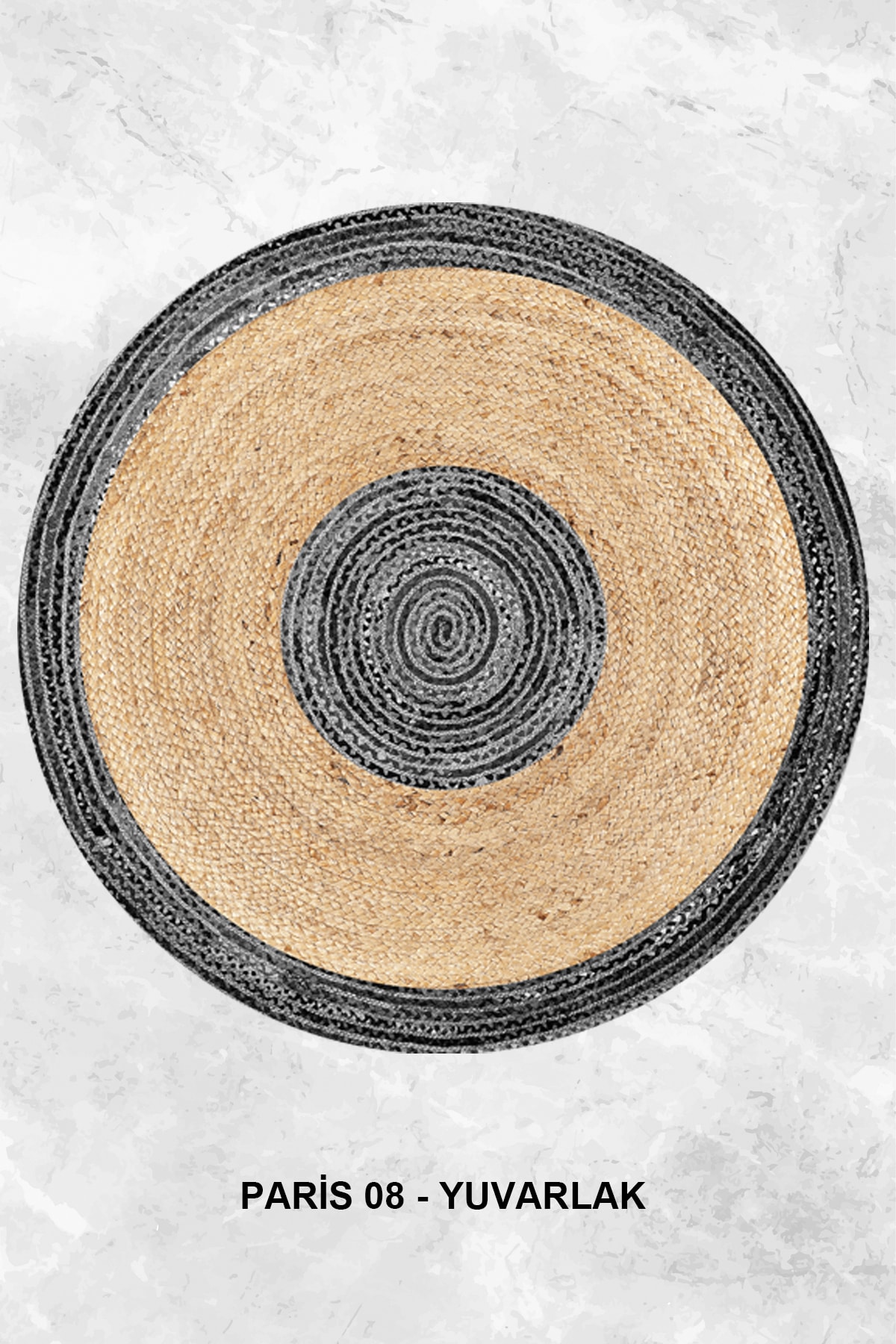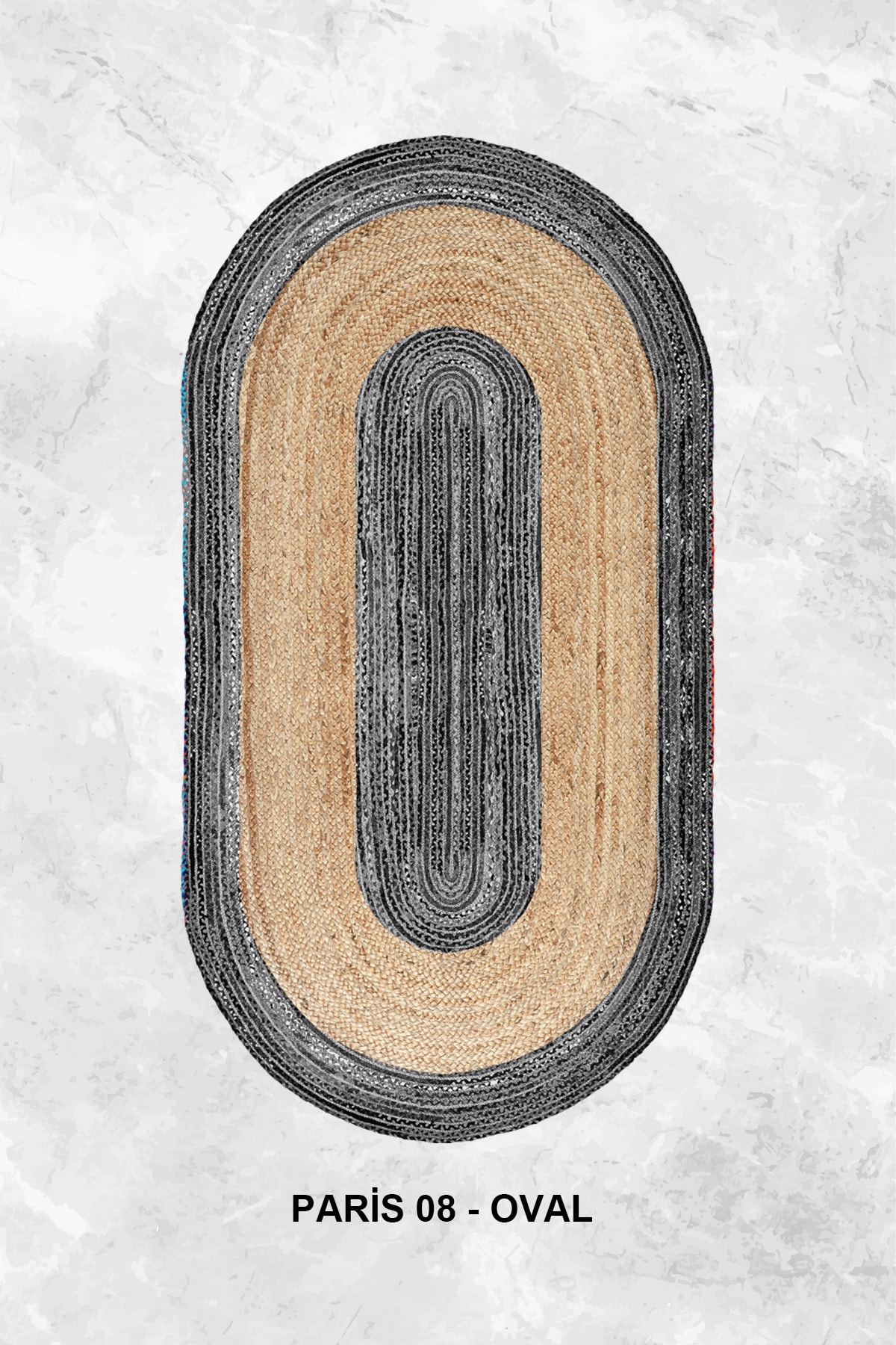 Gri Bej Baskılı Jüt Görünümlü Dijital Baskılı Kilim, Çift Taraflı Örme Üzeri Baskı Jüt Kilim