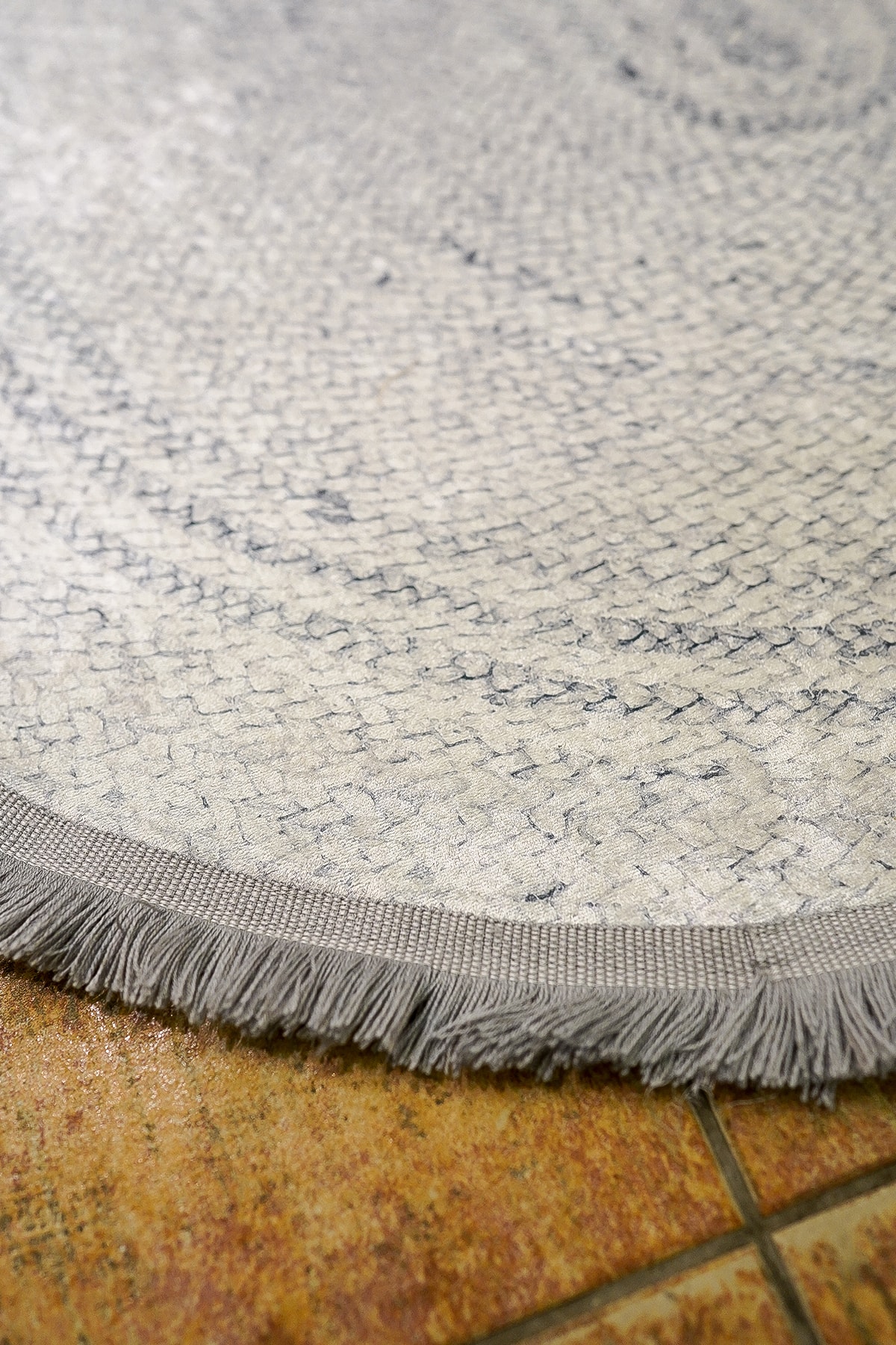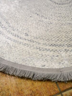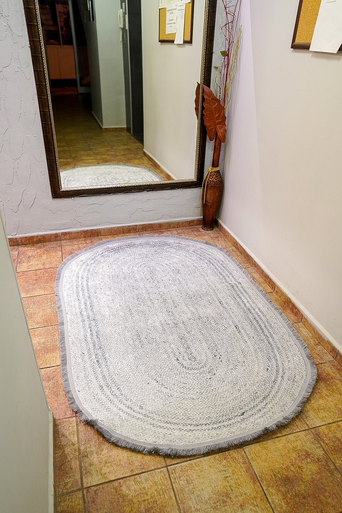 Gri Örgü Baskı Jüt Desen Dijital Baskı Yıkanabilir Kaymaz Taban Leke Tutmaz Oval Desen Halı Kilim