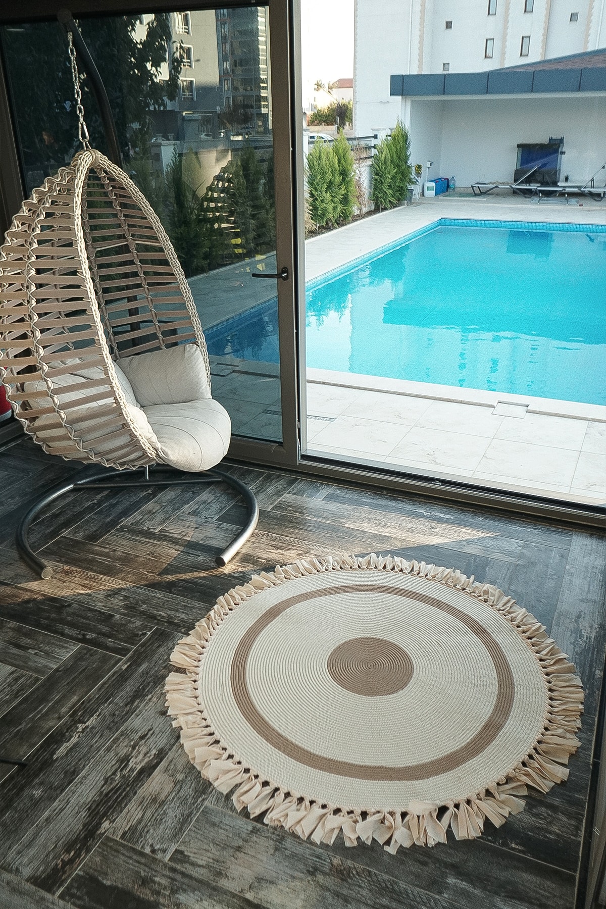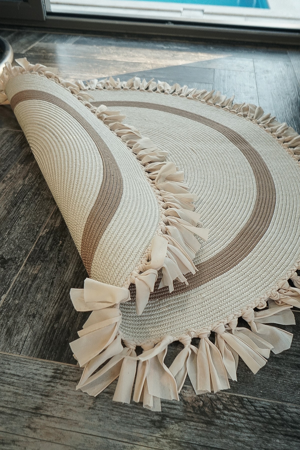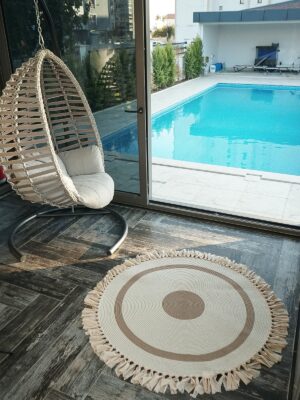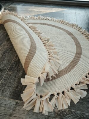 Hasır Jüt Beyaz Kilim Halı Saçaklı
