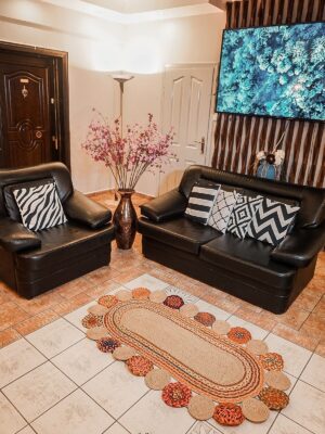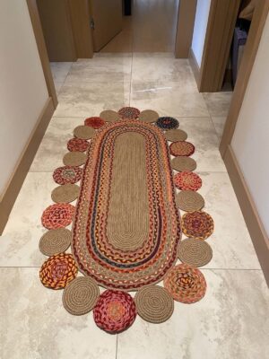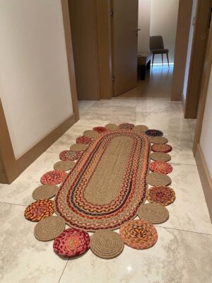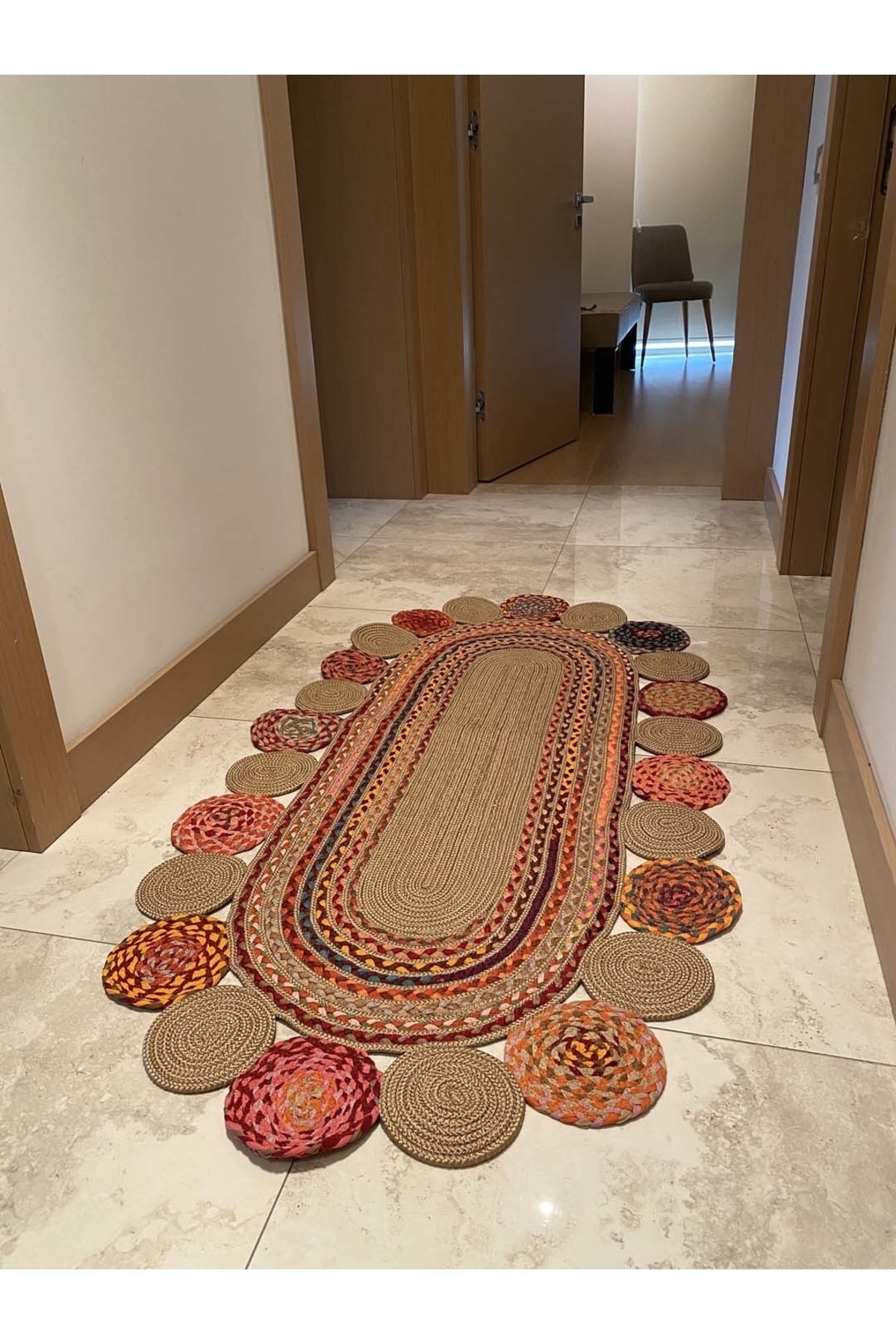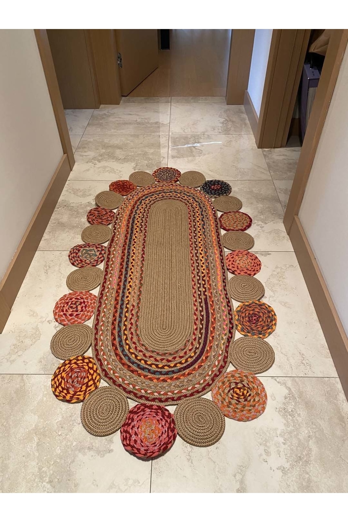 Ortalama 1.5 cm kalınlığındadır. Jüt, doğal renk varyasyonlarına sahip dayanıklı ve geri dönüştürülebilir bir materyaldir. Canlı ve solmaz renkleri ile evinizi canlandırır. Örgü kilimdir, doğal örgü tabanlıdır. İç ve dış mekan kullanımı için uygundur. Ürünün ebatı saçaklar HARİÇ ebatıdır. Kolay temizlenir, dekoratif ve modern bir üründür. Halıyı elektrik süpürgesi ile düzenli olarak süpürünüz ve yönünü çeviriniz. Kurumuş lekeler zaman geçirmeden çıkartılmalıdır. Sıvı lekeleri ovalamayınız, kağıt havlu ile suyunu alıp hafif deterjan ve nemli bez ile siliniz.;