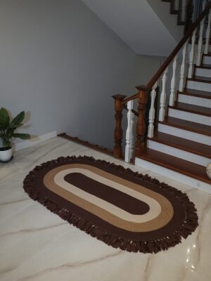 Ortalama 1; 5 cm kalınlığındadır; Jüt, doğal renk varyasyonlarına sahip dayanıklı ve geri dönüştürülebilir bir materyaldir; Canlı ve solmaz renkleri ile evinizi canlandırır; Örgü kilimdir, doğal örgü tabanlıdır; İç ve dış mekan kullanımı için uygundur; Kolay temizlenir, dekoratif ve modern bir üründür; Halıyı elektrik süpürgesi ile düzenli olarak süpürünüz ve yönünü çeviriniz; Kurumuş lekeler zaman geçirmeden çıkartılmalıdır; Sıvı lekeleri ovalamayınız, kağıt havlu ile suyunu alıp hafif deterjan ve nemli bez ile siliniz; ;;