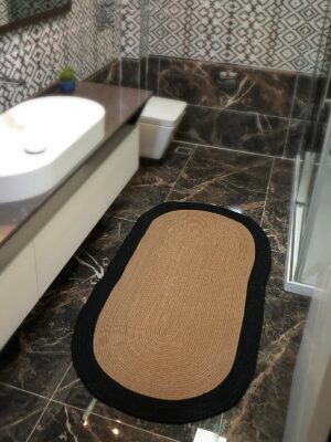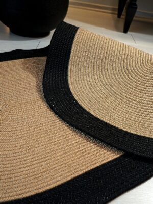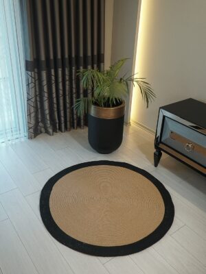 Hasır Jüt Siyah Çerçeveli Yuvarlak Kilim Halı