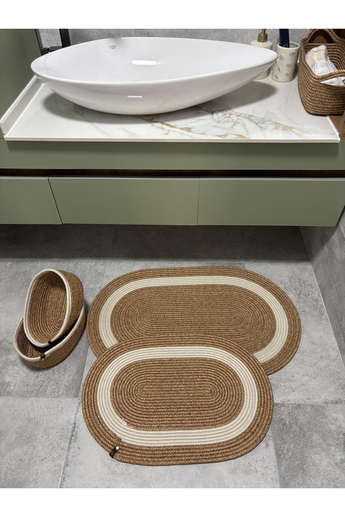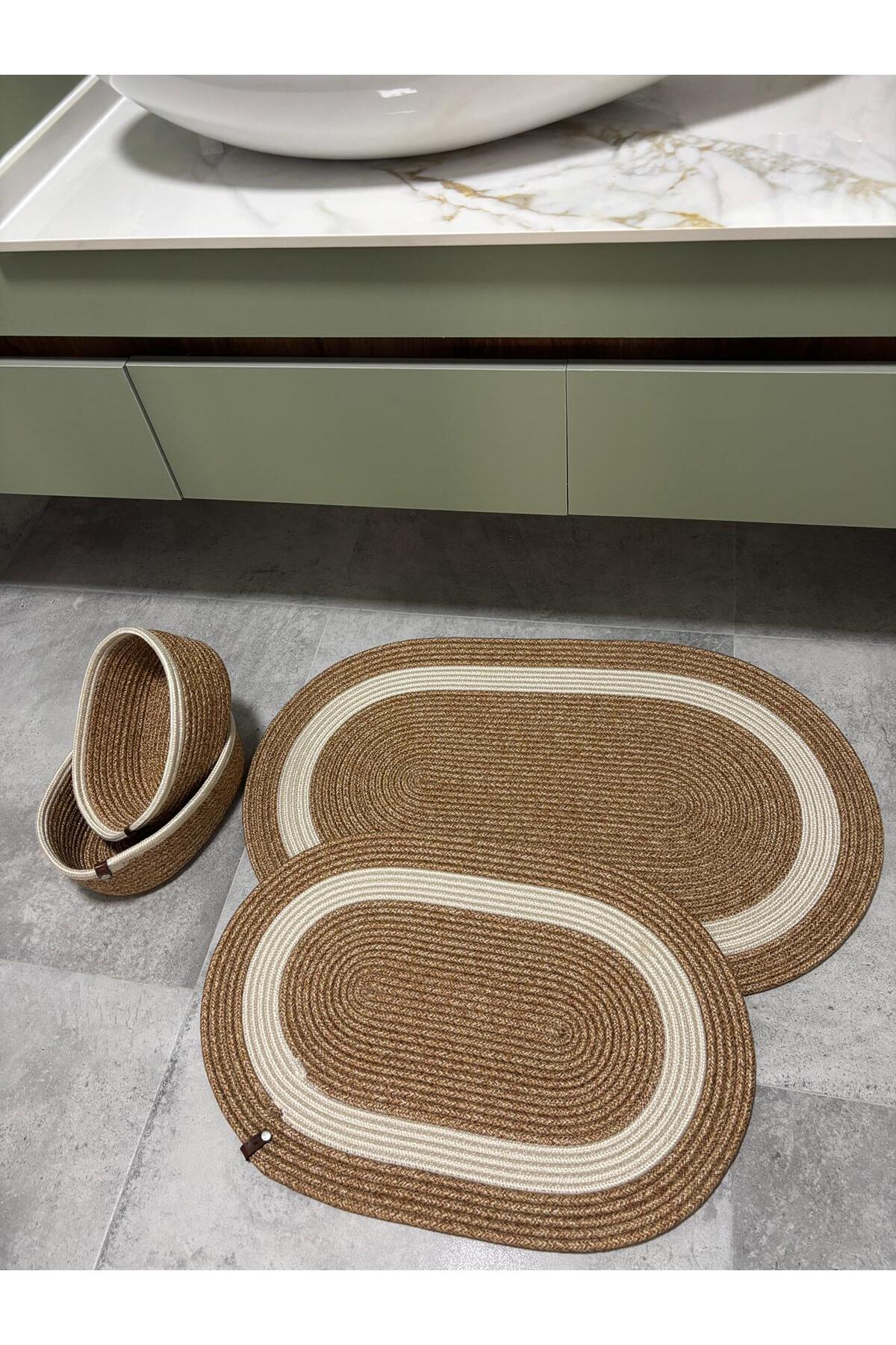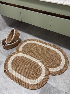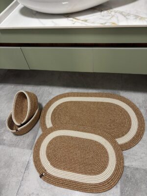 10×17 cm ölçülerinde büyük sepet yer almaktadır. Kaymaz tabanlı paspaslar yüksek su emiciliği sayesinde güvenli ve hijyenik kullanım sunarken, hızlı kuruma özelliği ile pratik bir deneyim sağlar. Dayanıklı ve uzun ömürlü yapısı sayesinde uzun süreli kullanım imkanı sunan takım, havlu ve kişisel eşyalar için dekoratif sepetleriyle banyo düzeninizi kolaylaştırır. Doğal jüt ve hasır dokusu ile modern dekorasyon anlayışına uyum sağlayan bu özel set, banyonuza estetik, kalite ve düzen katmak için ideal bir seçimdir.