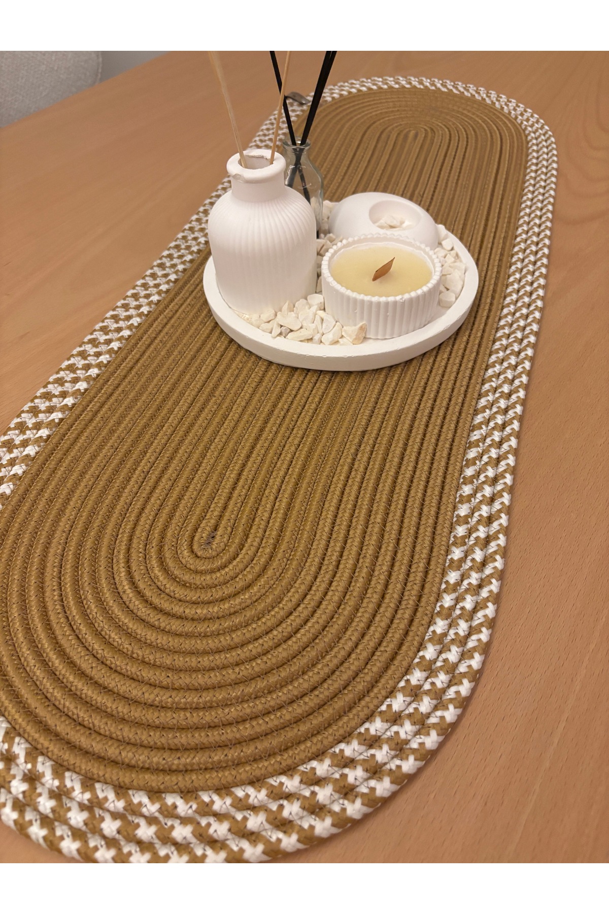 - evgili Müşterilerimiz. MaVaux jüt Runnerlarımız, sadece güzel ve çekici değil, aynı zamanda çok işlevseldir. Dilediğiniz kadar geniş amaçlı kullanabilirsiniz. Runnerlar, çevre dostu pamuk elyaftan yapılmıştır ve ülkemizin usta zanaatkarları tarafından el yapımı olarak üretilmektedir. El örgülü masa örtüsü Runner, birden çok yerde kullanılabilir. Salon, yatak odası, yemek odası, mutfak, teras, balkon, bahçe, ofis ve evin her yerinde kullanabilirsiniz. Doğal jüt rengi, herhangi bir oda dekoruyla kolay uyum sağlayacaktır.