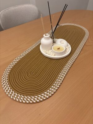 - Zarif ve doğal bir dokunuş arıyorsanız, jüt runner mükemmel bir seçimdir. Doğal liflerden üretilmiş bu runner, rustik bir estetik sunarak sofralarınıza sıcak bir atmosfer katacaktır. Jüt ipinin dayanıklılığı ve şıklığı, hem günlük kullanımlar hem de özel davetler için ideal bir seçenektir. Ekolojik açıdan sürdürülebilir bir malzeme olan jüt, hem çevre dostu hem de şık bir alternatiftir. Basit ve doğal dokusu, her türlü masa örtüsüyle uyum sağlar ve sofistike bir zarafet katar. Jüt runner’ınız, ev dekorunuza samimi bir dokunuş getirirken, yemeklerinize de eşsiz bir stil kazandırır.