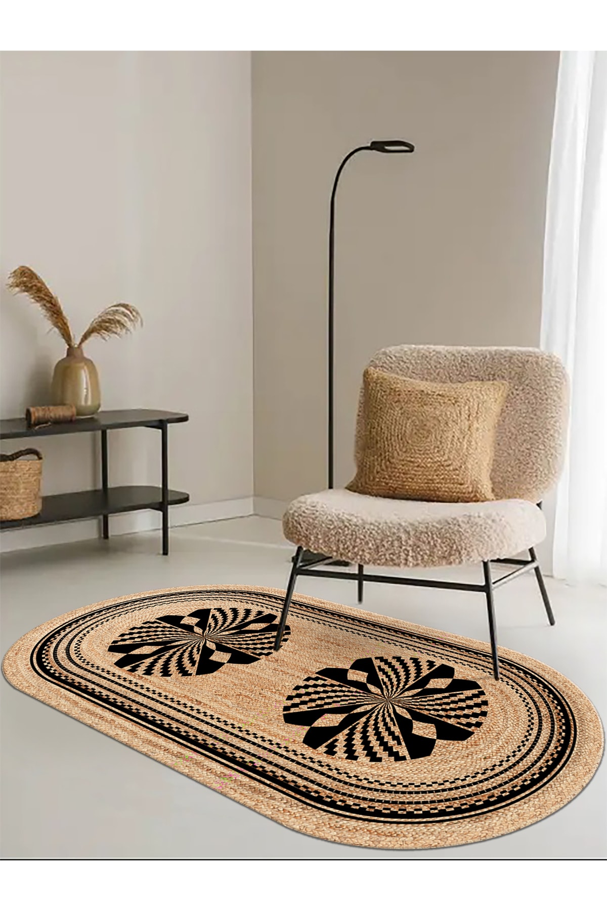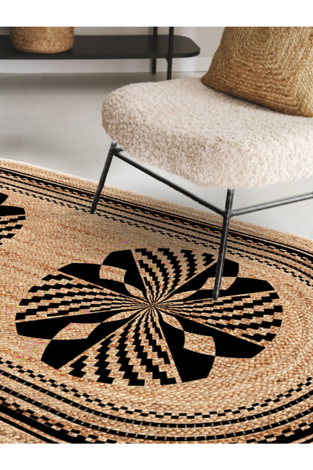Ilüzyon Desen Baskılı Jüt Görünümlü Dijital Baskılı Kilim, Çift Taraflı Örme Üzeri Baskı Jüt Kilim