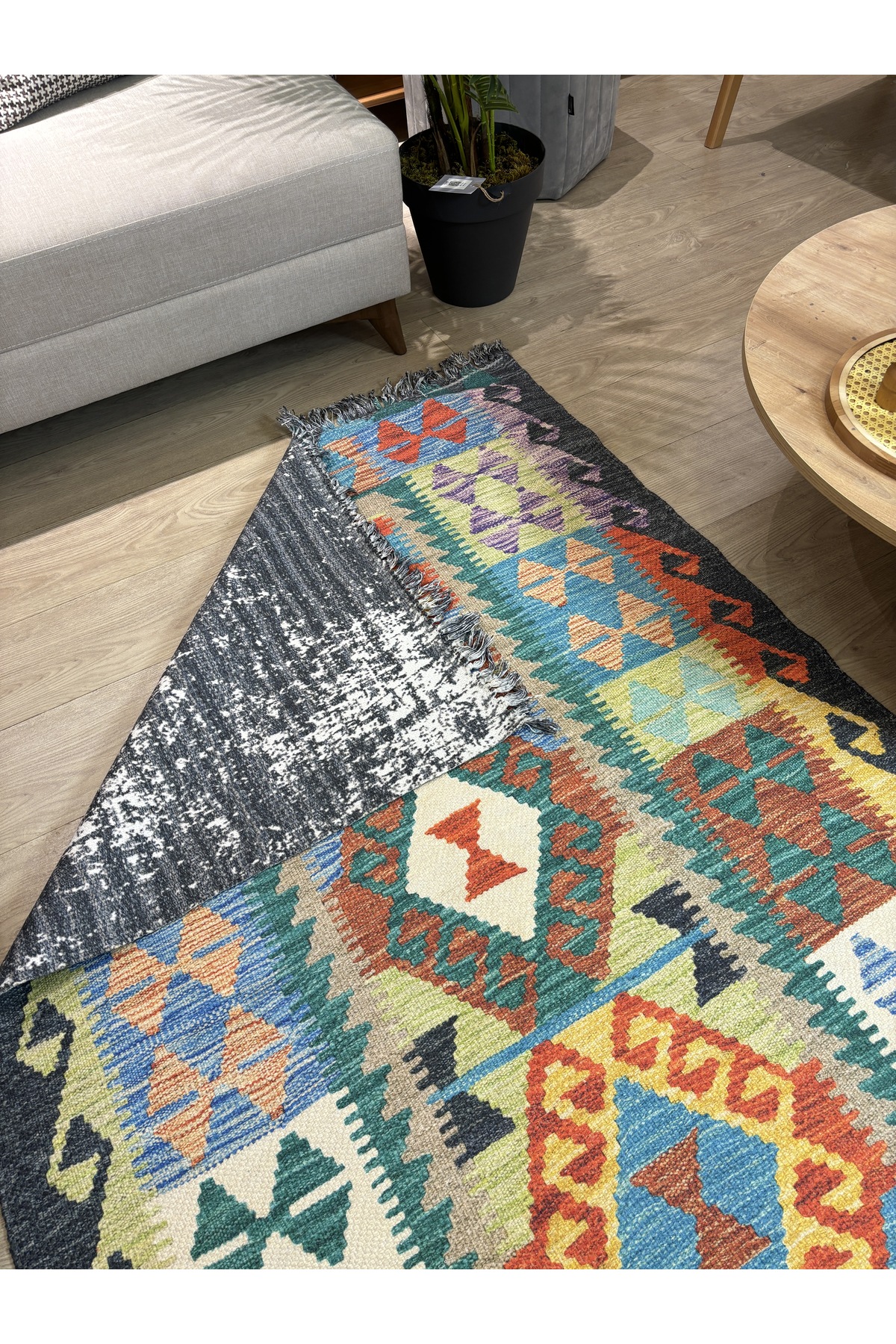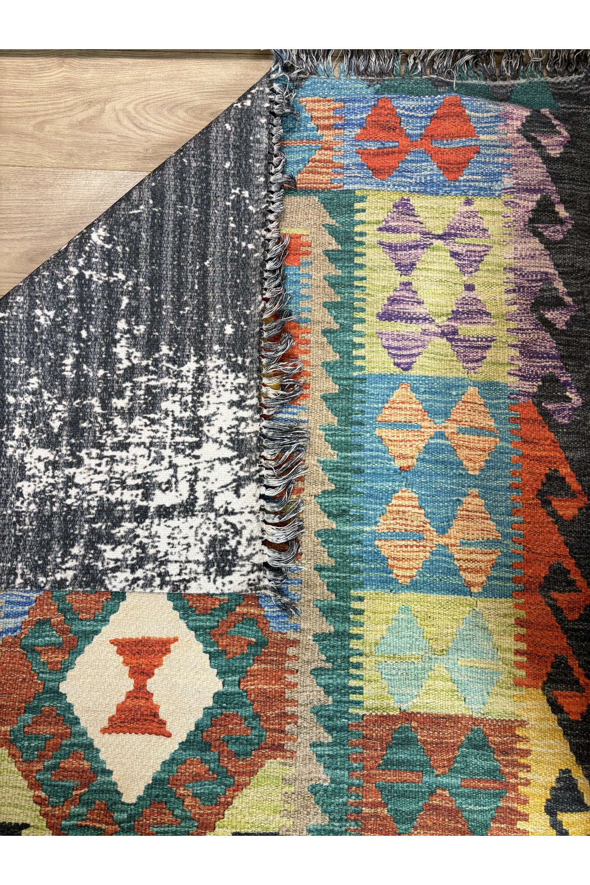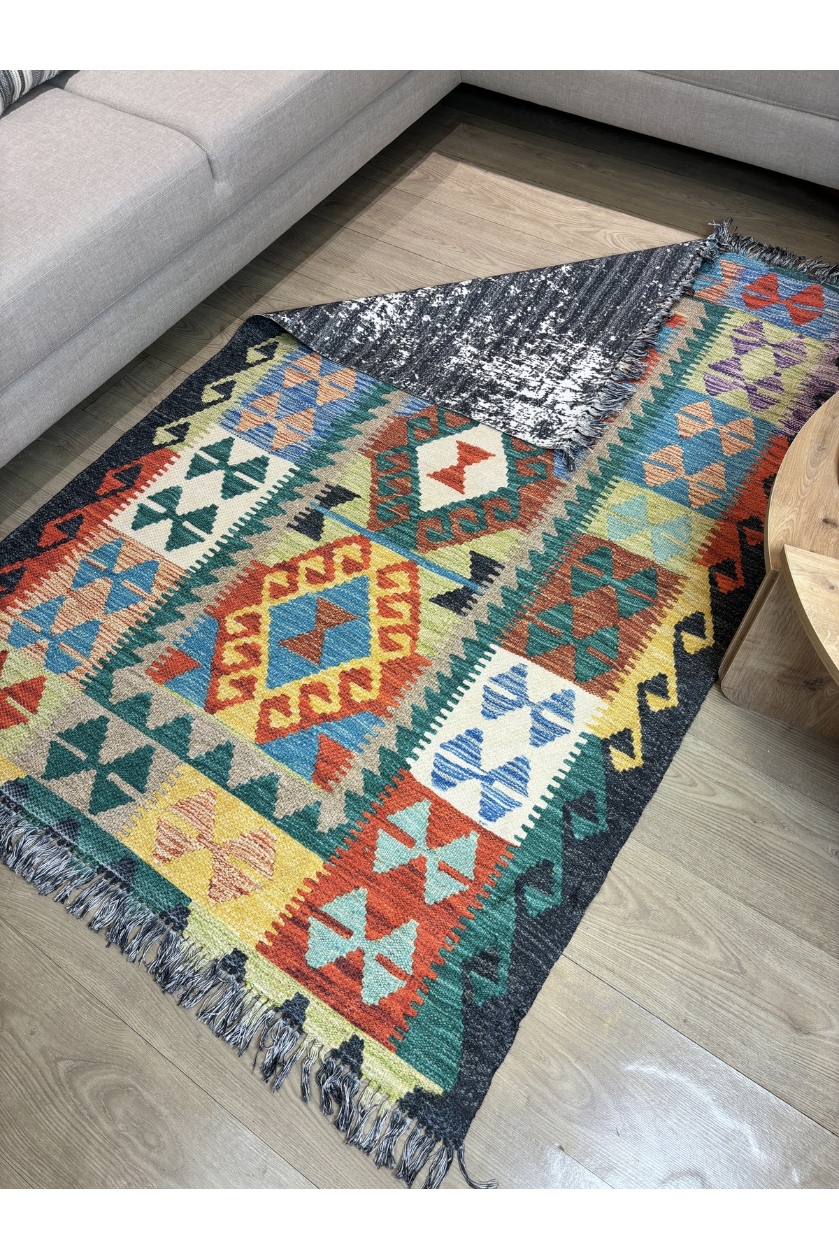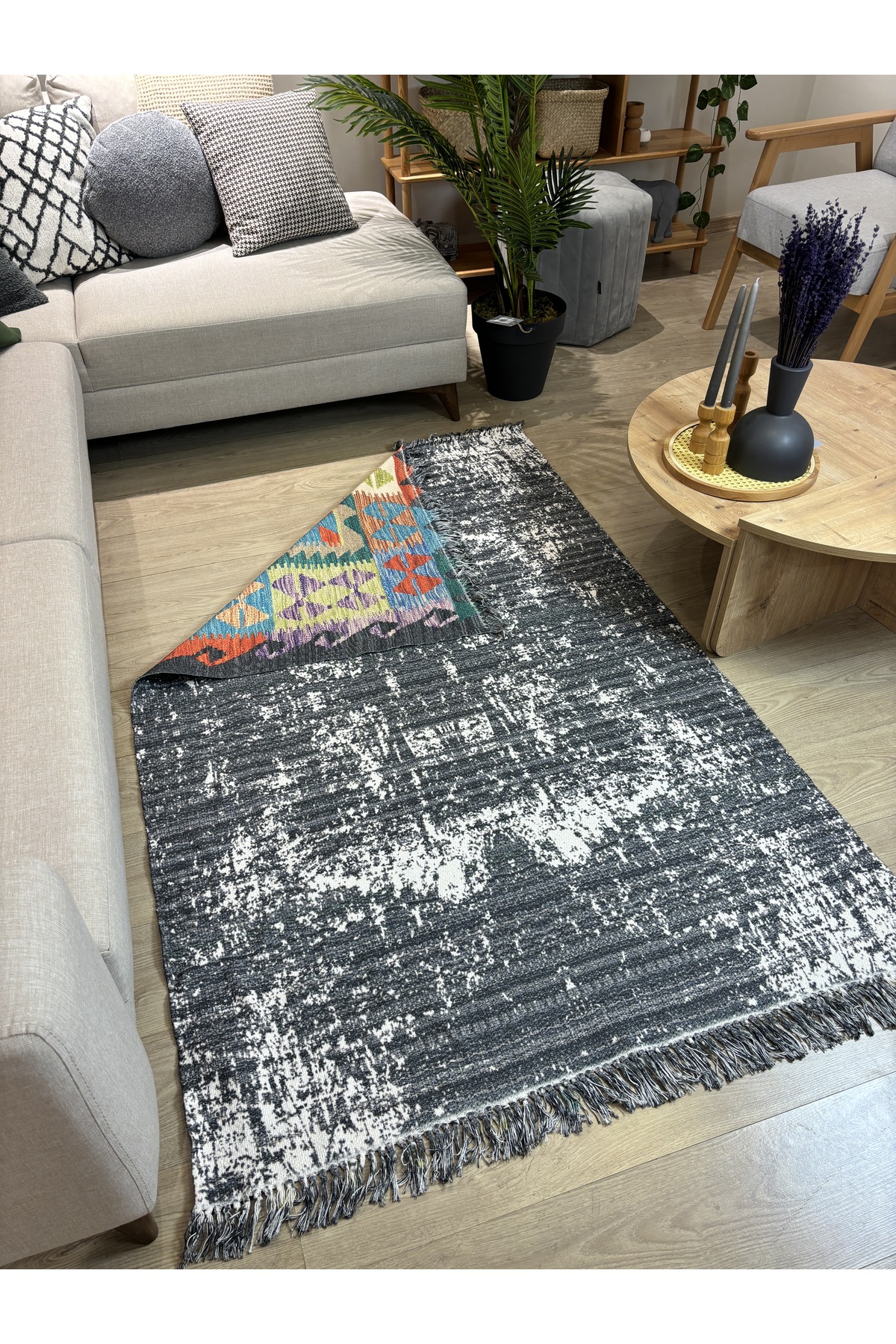 İskandinav Dokuma Taban Çift Taraf Baskılı Etnik Desenli Yıkanabilir Kilim