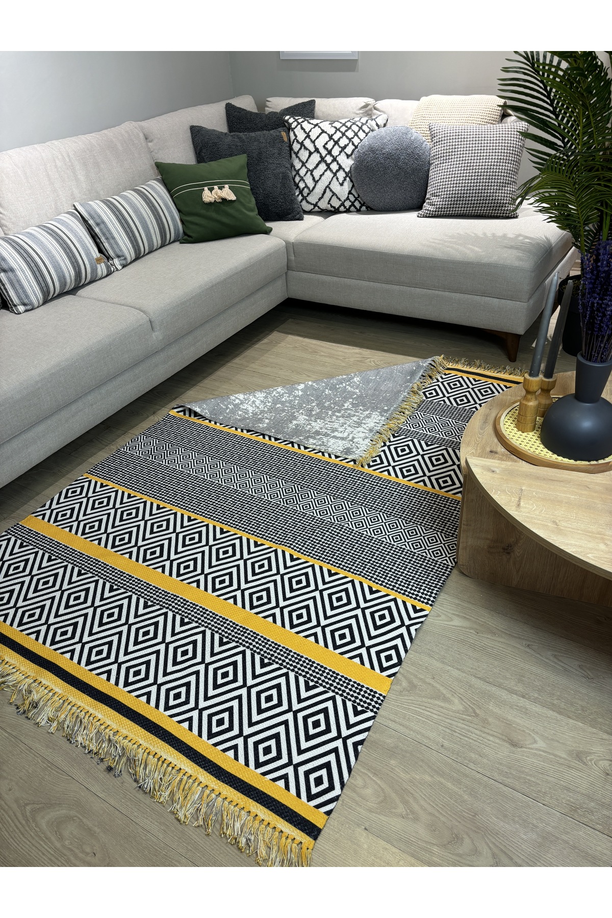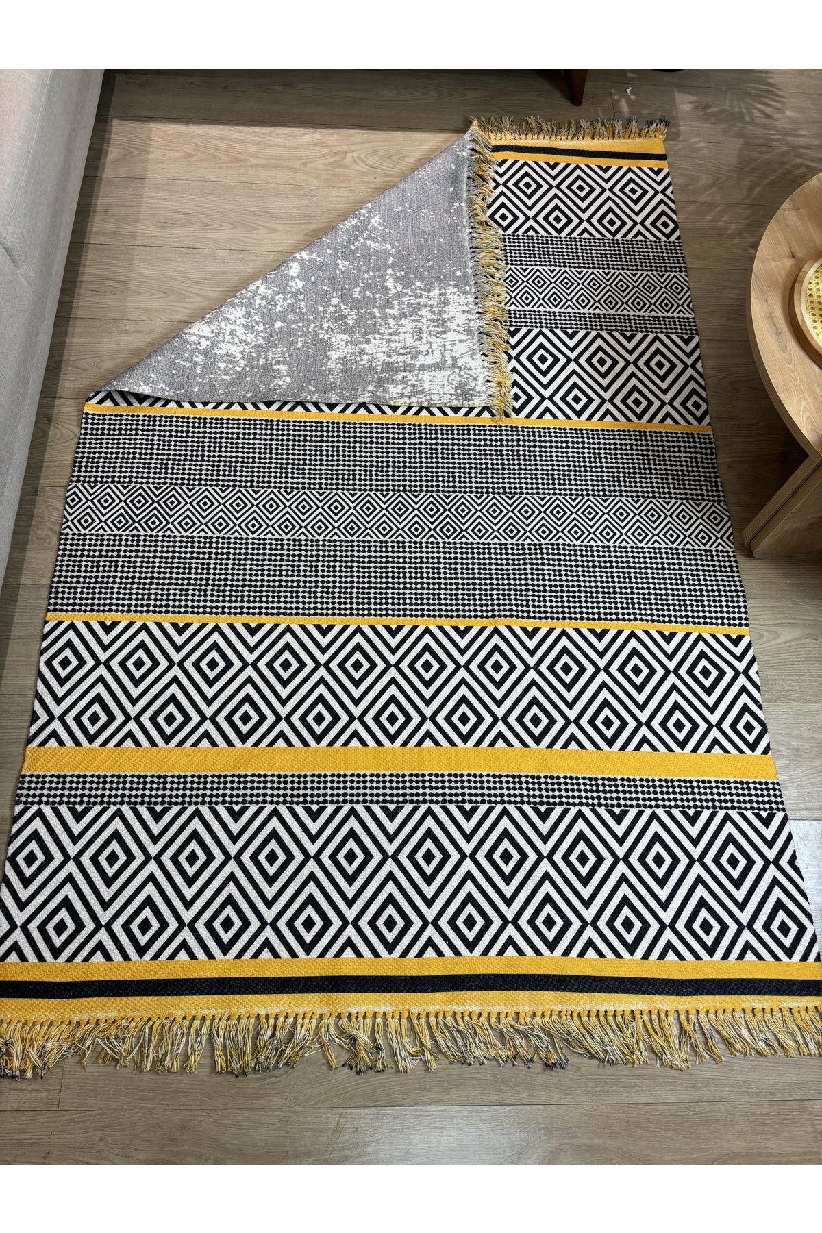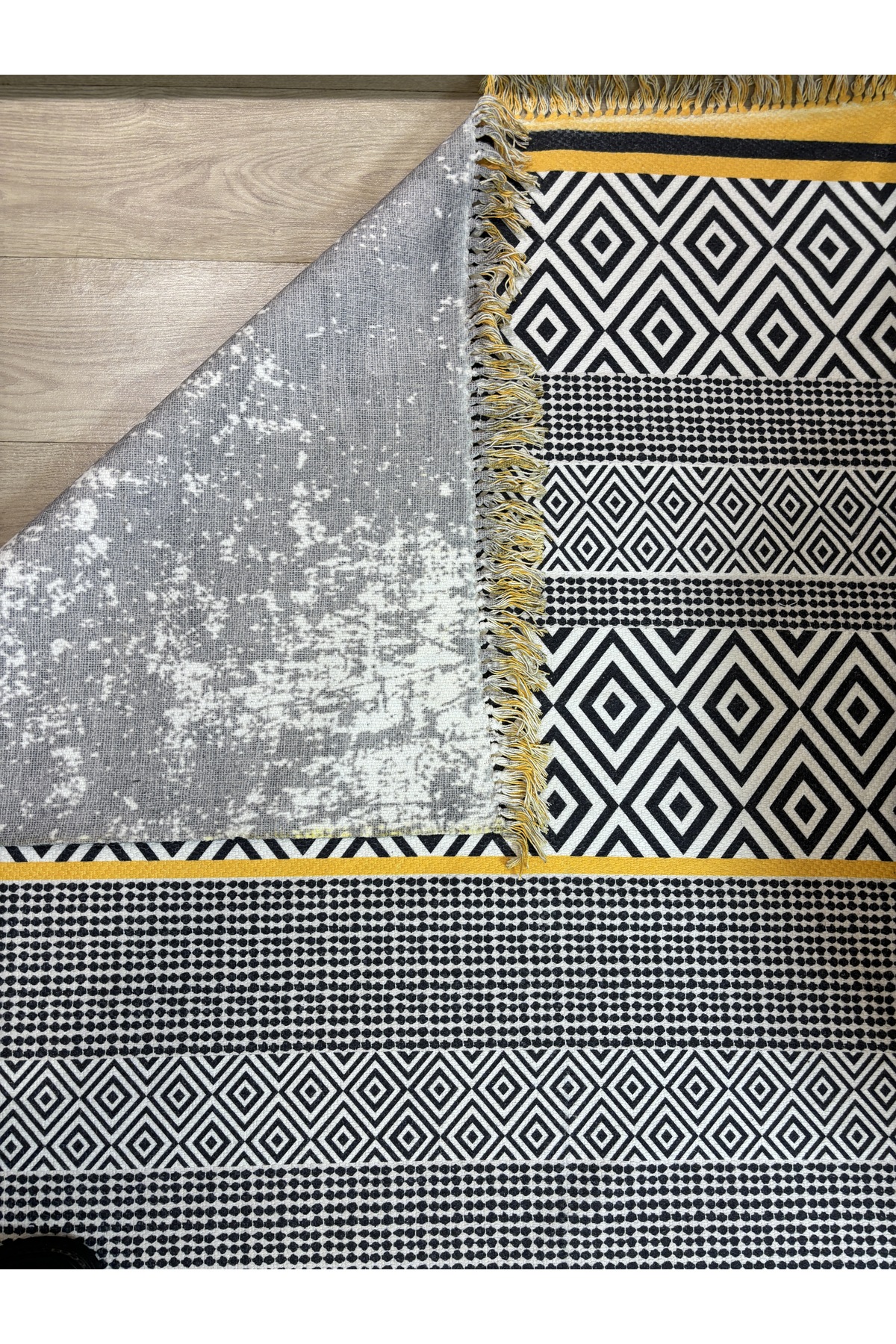 İskandinav Dokuma Taban Çift Taraf Baskılı Etnik Desenli Yıkanabilir Kilim